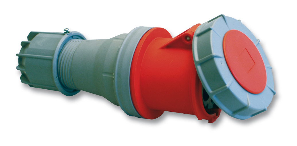 Кабельный силовой разъем СЕЕ 4-пин 125А с защитной крышкой, серия POWER TWIST, <гнездо/мама>, структура: 4-х контактный, 125А/400V/3P+E/IP67, корпус - полиамид (PA6), контакты - латунь, под винтовой зажим (винтовая клемма TWIST), класс защиты IP67, подходит для проводов сечением 16.0 - 50.0 мм2, кабельный ввод для кабеля диаметром (22.5-50.0 мм), цвет: красный