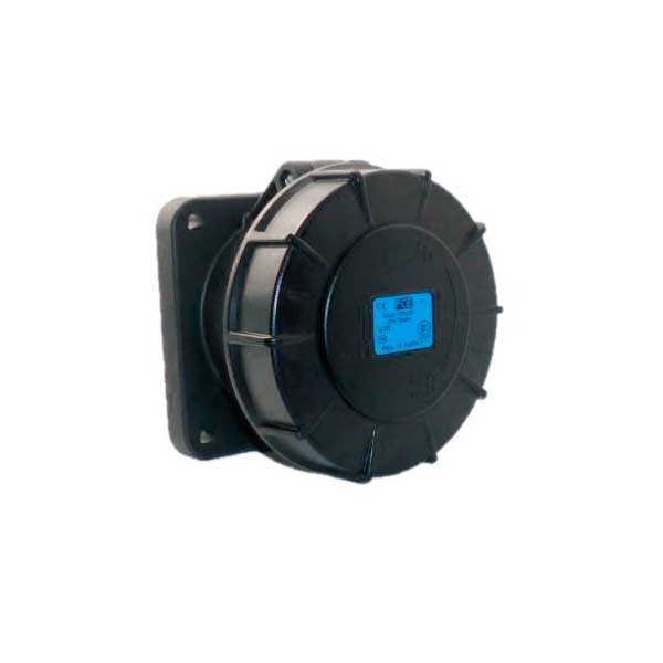 Панельный силовой разъем СЕЕ 3-пин 63А, серия MIDNIGHT POWER TWIST, <гнездо/мама>, структура: 3-х контактный, 63А/230V/2P+E/IP67, корпус - полиамид (PA6), фланец 100x100 мм с 4 отв. 80x80 мм, диам. отв. 7.0 мм, контакты - латунь, под винтовой зажим (винтовая клемма TWIST), класс защиты IP67, подходит для проводов сечением: витая жила (6.0 - 16.0 мм2), цельная жила (6.0 - 25.0 мм2), цвет: черный