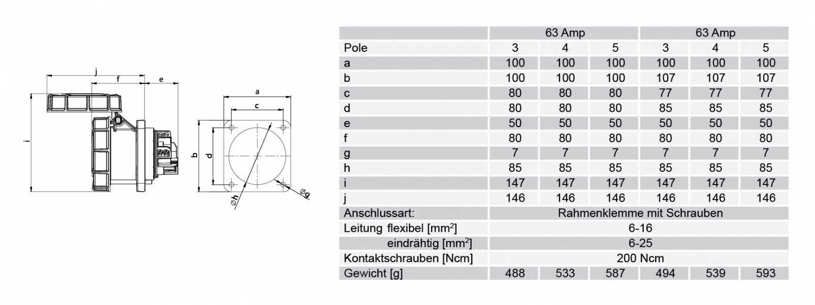 Категория Силовой Производитель PCE Категория товара Разъём Номинальный ток, А 63 Пол мама Установка панельный Тип монтажа винтовая клемма Количество контактов 4 Цвет корпуса черный Класс защиты IP67 Температура эксплуатации -30°C +80°C -