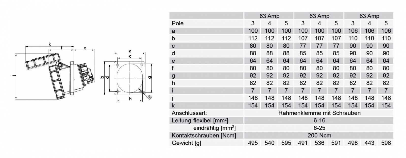 Категория Силовой Производитель PCE Категория товара Разъём Номинальный ток, А 63 Пол мама Установка панельный, наклонный Тип монтажа винтовая клемма Количество контактов 5 Цвет корпуса красный Класс защиты IP67 Температура эксплуатации -30°C +80°C -