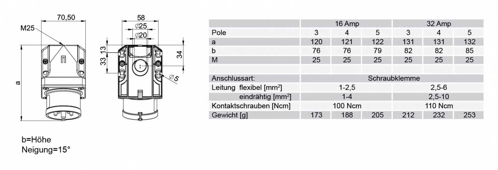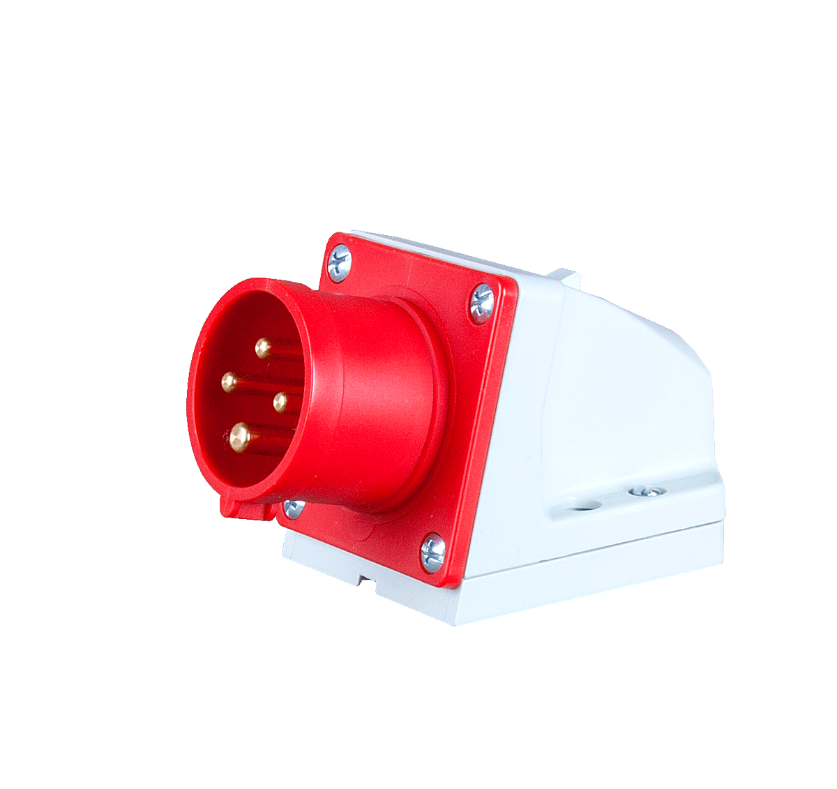 Панельный силовой разъем СЕЕ 4-пин 16А, настенный, серия SHARK, <штекер/папа>, структура: 4-х контактный, 16А/400V/3P+E/IP44, корпус - полиамид (PA6), крепление на поверхность / наклон 15°, контакты - латунь, под винтовой зажим (винтовая клемма TWIST), класс защиты IP44, подходит для проводов сечением: витая жила (1.0 - 2.5 мм2), цельная жила (1.0 - 4.0 мм2), цвет: красный