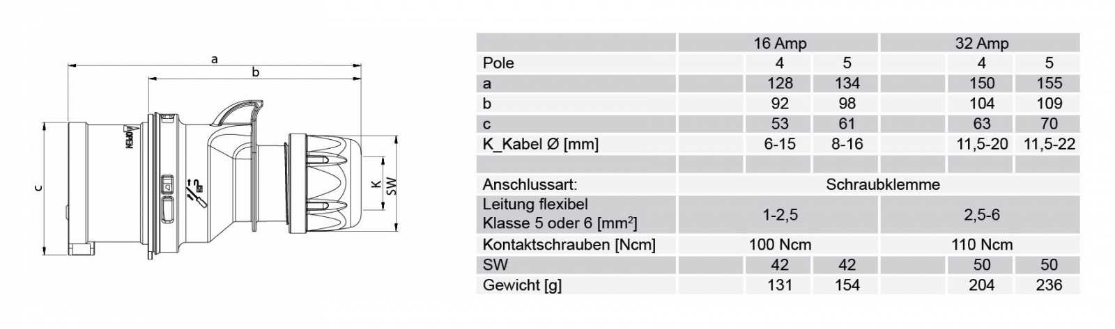 Категория Силовой Категория товара Разъём Производитель PCE Номинальный ток, А 16 Пол папа Установка кабельный Тип монтажа винтовая клемма Количество контактов 5 Диаметр совместимого кабеля, мм 8,0-16,0 Цвет корпуса красный Класс защиты IP44 Температура эксплуатации -30°C +80°C -