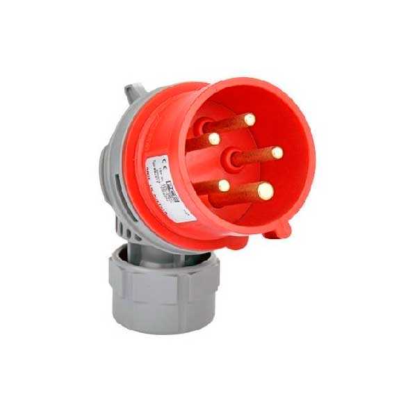 Кабельный угловой разъем СЕЕ 5-пин 16А, серия SHARK, <штекер/папа>, структура: 5-и контактный, 16А/400V/3P+N+E/IP44, корпус - полиамид (PA6), контакты - латунь, под винтовой зажим (винтовая клемма TWIST), класс защиты IP44, подходит для проводов сечением 1.0 - 2.5 мм2, кабельный ввод для кабеля диаметром (8.0-16.0 мм), цвет: красный