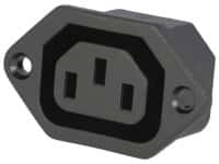 Панельный разъем C13 IEC 60320, 3-х контактный <гнездо/мама>, корпус: полибутилентерефталат PBT, плоские вертикальные контакты - фосфористая бронза /покрытие никель, ножевые клеммы под пайку, структура: 2P+E (10 А /250 В), для проводов сечением до 0.75-1.5 мм2 (AWG18-14), класс защиты IP20; цвет: черный