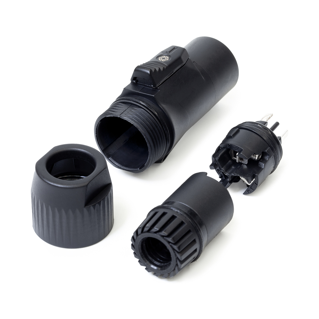 Кабельный разъем powerCON TRUE1, 16 А, power IN (для входа питания), пыле- и влагозащищенный, класс защиты (IP65), 3-х контактный, штекер/папа, корпус - полиамид (PA), надежная система блокировки соединения, контакты - покрытие серебро, под винтовой зажим (винтовые клеммы), подходит для проводов сечением до 2.5 мм2 (AWG 12), номинальное напряжением 250 В (переменное) / номинальный ток 16 А при сечении 2.5 мм2, на кабель диаметром (6.0-12.0 мм). Данный разъем совместим с панельным разъемом POWER OUT (для выхода питания) MRC RPWSX-F, REAN RAC3F-X-000, Neutrik NAC3FPX и NAC3FPX-ST. ВНИМАНИЕ: возможно безопасное подключение под нагрузкой!