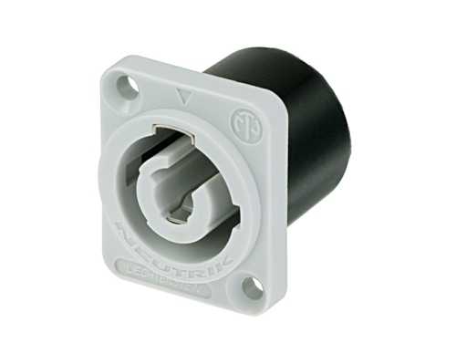 Панельный разъем powerCON 20 А, без разделителя изоляции, тип - B, power OUT System (для выхода питания - серого цвета), фланец D-типа серого цвета, 3-х контактный, штекер/папа, корпус - полиамид (PA) черного цвета, надежная система блокировки соединения (Quick Lock), контакты - покрытие серебро, (плоские клеммы: 3/16 "), под пайку, подходит для проводов сечением до 2.5 мм2 (AWG 12), номинальное напряжением 250 В (переменное) / номинальный ток 20 А при сечении 2.5 мм2. ВНИМАНИЕ: данный разъем совместим только с кабельным разъемом POWER OUT (для выхода питания) NAC3FCB (серого цвета). Маркировка: два независимых типа соединителей (А-тип, В-тип) имеют “ключи” на корпусе разъема. Кроме того, разъемы отличаются цветом: А-тип (POWER IN) - синего цвета, В-тип (POWER OUT) - серого цвета