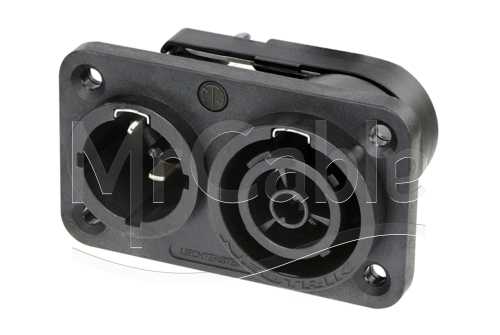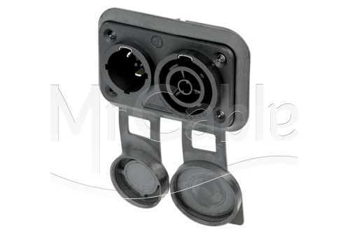 Панельный разъем powerCON® TRUE1 TOP комбинированный, новой серии TRUE OUTDOOR PROTECTION (TOP), 16 А, power IN (для входа питания) и power OUT (для выхода питания), разработанный специально для наружного применения в суровых условиях, прочный герметичный корпус. Особенно устойчив к УФ-излучению, пыле- и влагозащищенный, класс защиты (IP65), прямоугольный фланец, 3-х контактный, штекер/папа - гнездо/мама, надежная система блокировки соединения, контакты - покрытие серебро, (плоские клеммы 1/4 "), под пайку, подходит для проводов сечением до 2.5 мм2 (AWG 12), номинальное напряжением 250 В (переменное) / номинальный ток 16 А при сечении 2.5 мм2. ВНИМАНИЕ: возможно безопасное подключение под нагрузкой! Комбинация входного и выходного устройства предназначена для последовательного соединения!