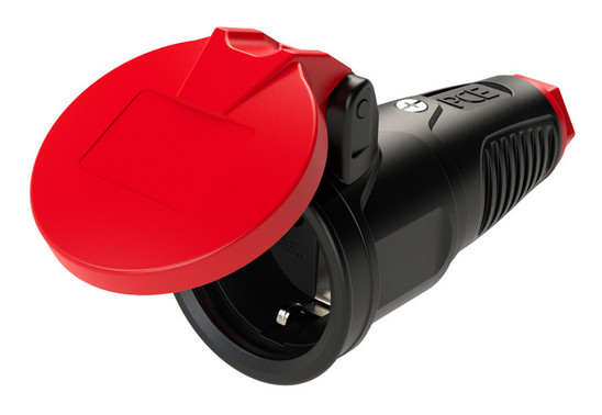 Кабельный разъем SCHUKO, <гнездо/мама>, подпружиненная защитная крышка, серия TAURUS2, структура: 3-х контактный, 16A/250V/2P+E/IP54, корпус - термопластичный эластомер (TPE), вставка конт. группы- полиамид (PA6), контакты - покрытие никель, под винтовой зажим (винтовая клемма), класс защиты IP54, для кабеля диаметром (6.0-13.0 мм)