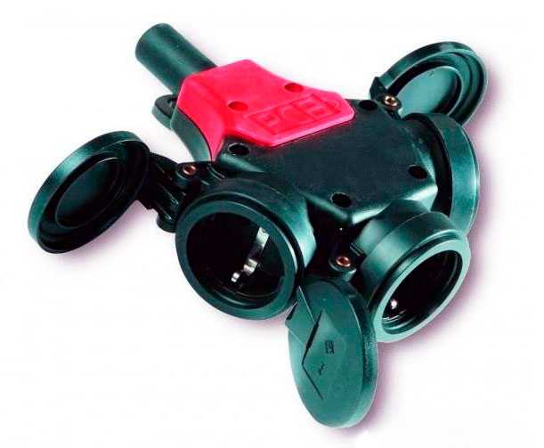 Кабельный тройник 3х SCHUKO, <гнездо/мама>, подпружиненная защитная крышка, серия TAURUS, структура: 3-х контактный, 16A/250V/2P+E/IP44, корпус - твёрдая резина, вставка конт. группы- полиамид (PA), контакты - покрытие никель, под винтовой зажим (винтовая клемма), класс защиты IP44, для кабеля диаметром (6.0-19.0 мм)