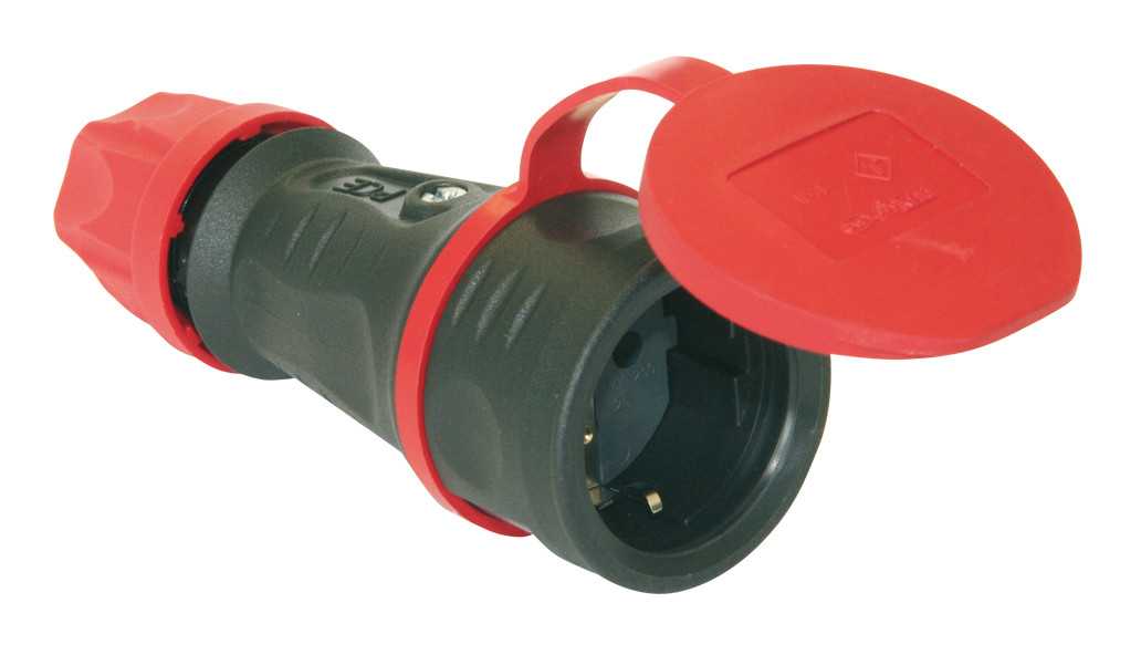 Кабельный усиленный разъем SCHUKO, <гнездо/мама>, серия TOP TAURUS, структура: 3-х контактный, 16A/250V/2P+E/IP44, корпус - твёрдая резина, вставка конт. группы- твёрдая резина, каб. ввод - полиамид, контакты - покрытие никель, под винтовой зажим (винтовая клемма), класс защиты IP44, для кабеля диаметром (6.0-13.0 мм)