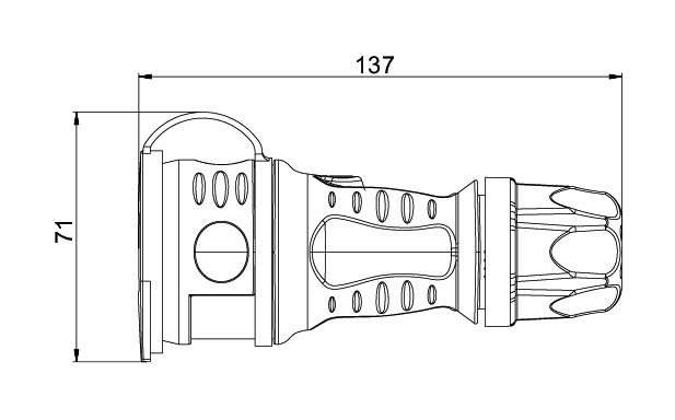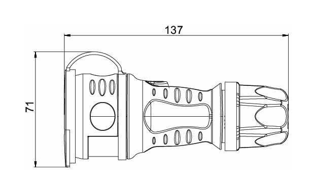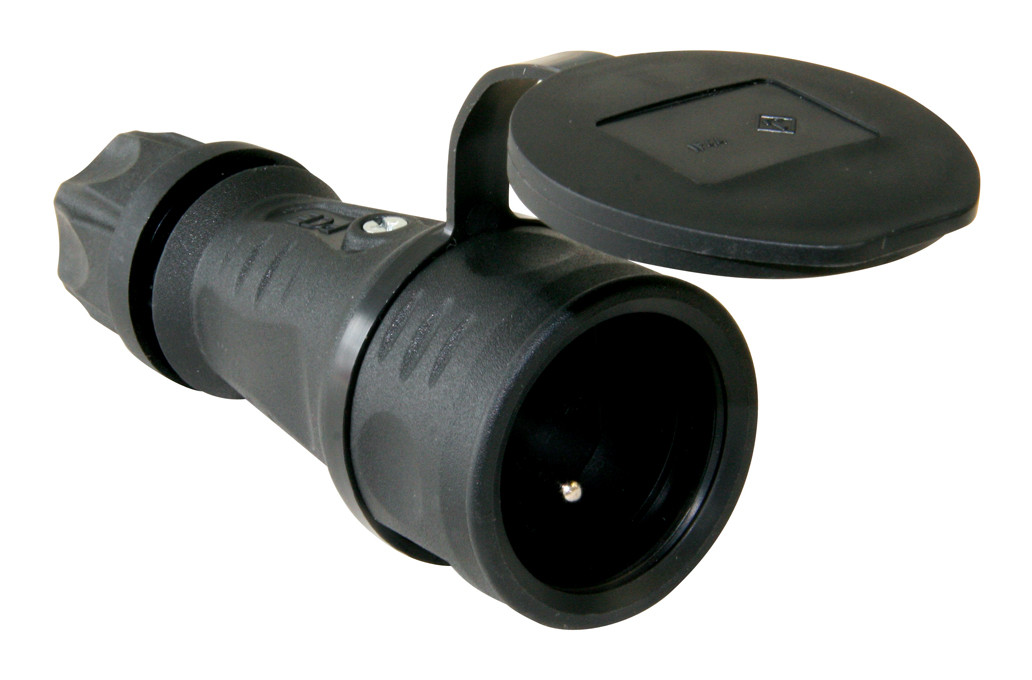 Кабельный усиленный разъем SCHUKO, <гнездо/мама>, серия MIDNIGHT TOP TAURUS, структура: 3-х контактный, 16A/250V/2P+E/IP44, корпус - твёрдая резина, вставка конт. группы- твёрдая резина, каб. ввод - полиамид, контакты - покрытие никель, под винтовой зажим (винтовая клемма), класс защиты IP44, для кабеля диаметром (6.0-13.0 мм)