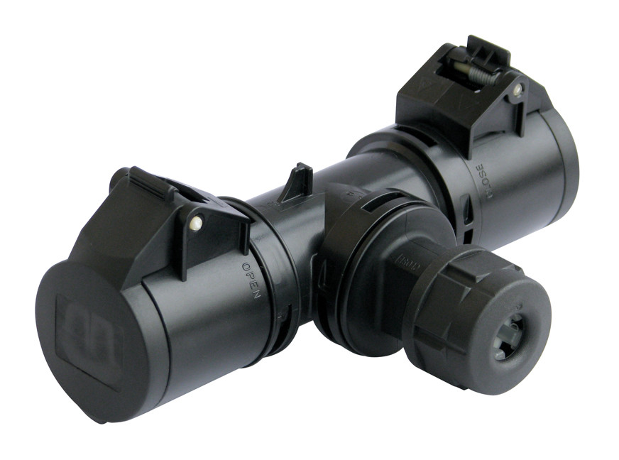 Разветвитель «1х СЕЕ 3-пин 16А гнездо > 1х СЕЕ 3-пин 16А гнездо > каб. ввод», структура: 3-х контактный, 16А/230V/2P+E/IP44, корпус - полиамид (PA), контакты - покрытие никель, класс защиты IP44, на кабель (диам. 12.00 мм / сечением 3x2.5мм2)