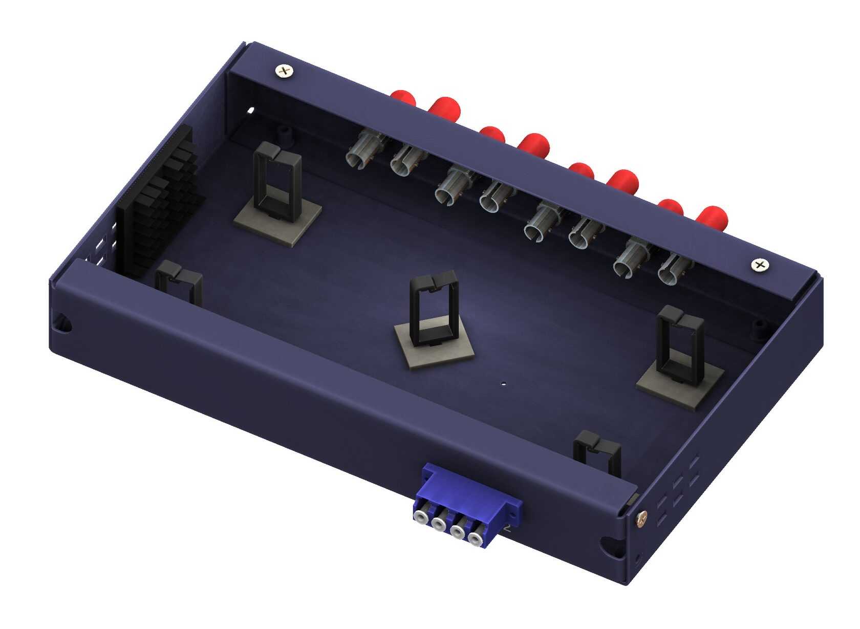 задней, первая из которых с 8 адаптерами ST, служит для коммутации внешнего активного оборудования, а вторая, с 1 адаптером