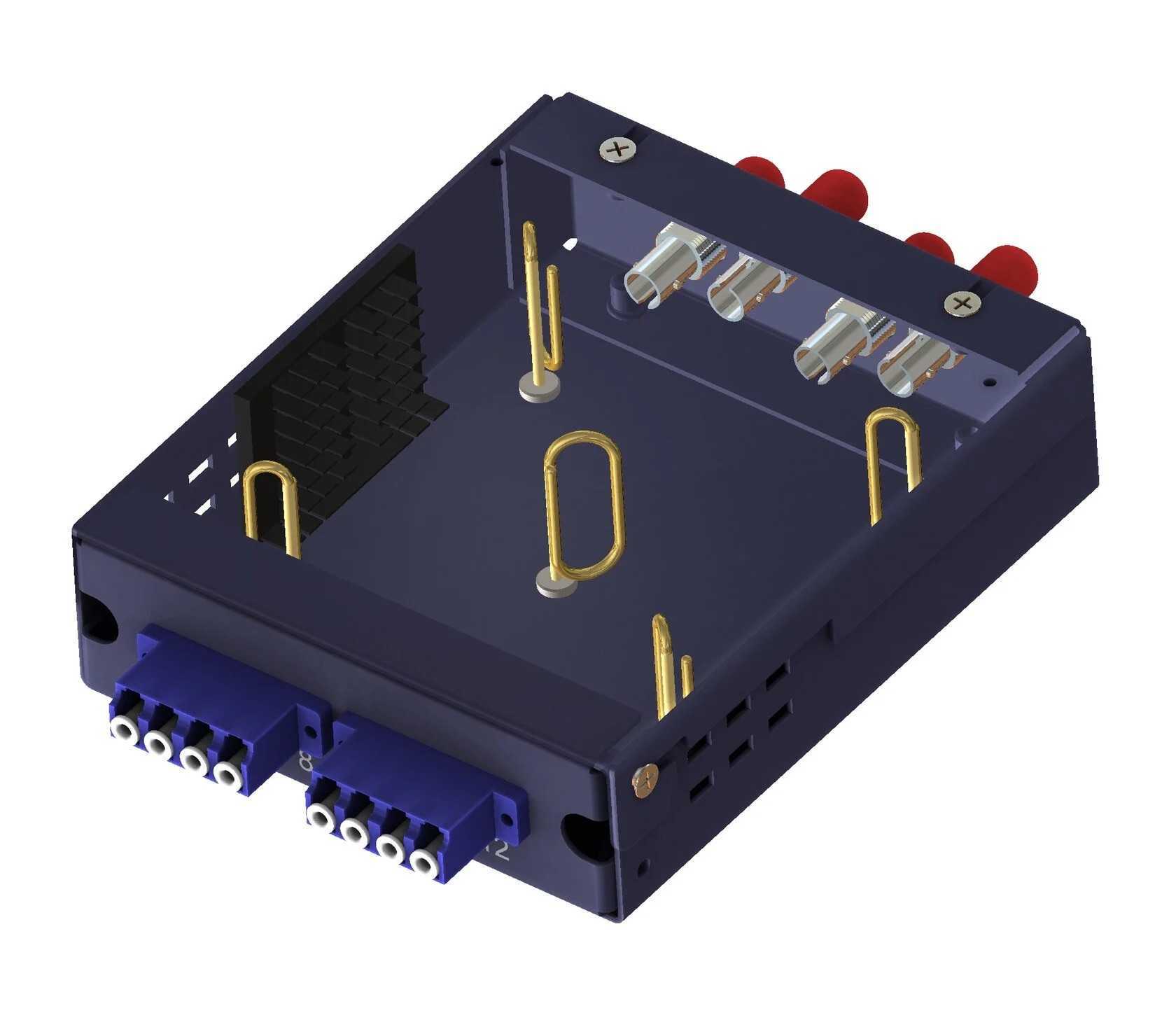 задней, первая из которых с 4 адаптерами ST, служит для коммутации внешнего активного оборудования, а вторая, с 2 адаптерами