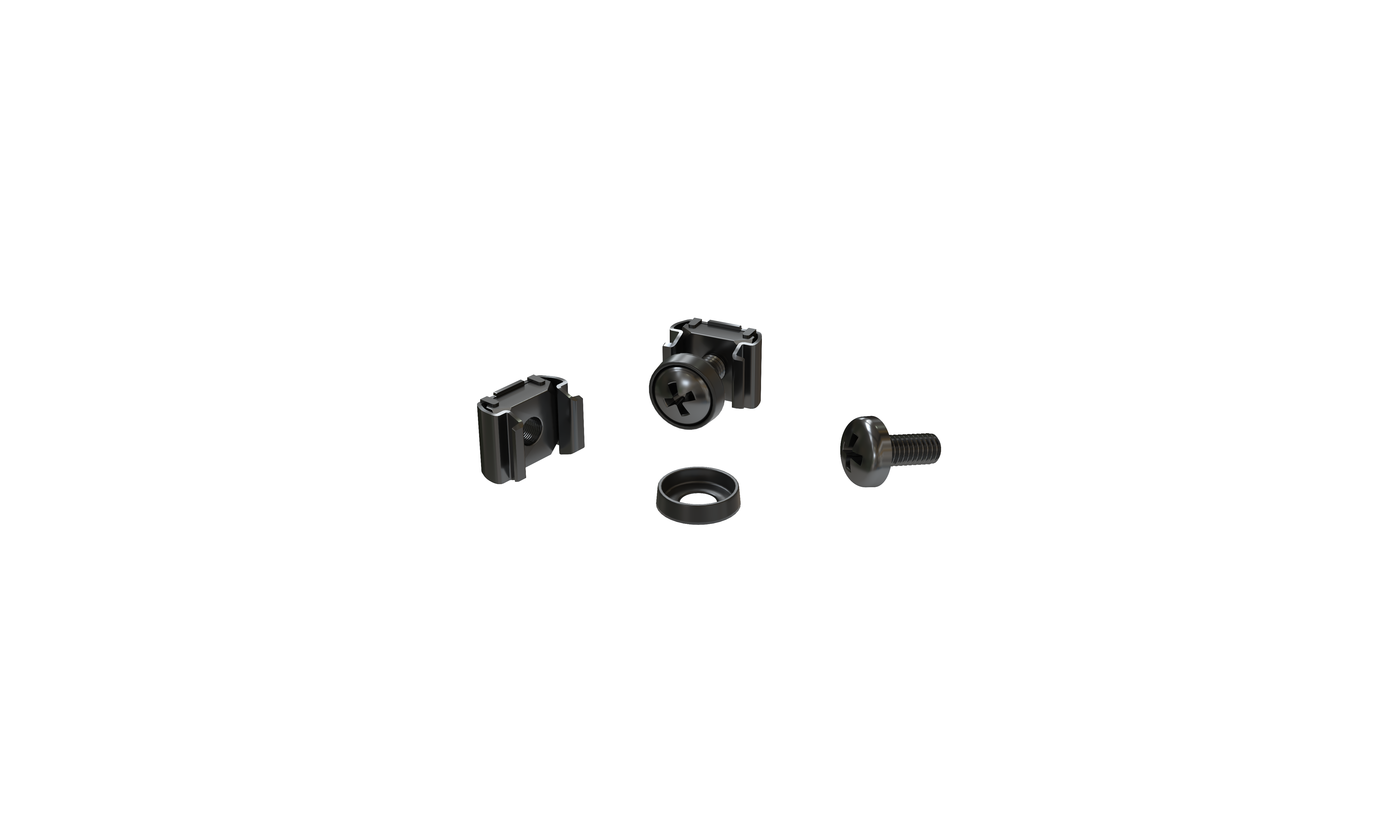 Крепежный комплект: винт с шайбой и гайкой M6 - разработаны для обеспечения безопасной и надежной установки оборудования в монтажные шкафы.