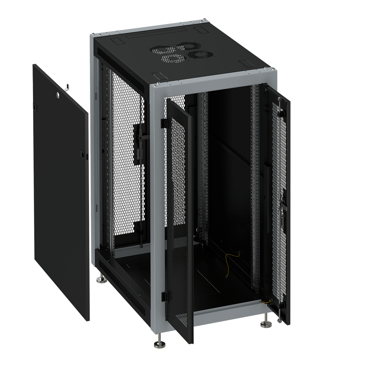 Шкаф 19 напольный 22U 600*1000 для построения телекоммуникационных и серверных сетей внутри помещений. За счет современного дизайна и небольших габаритов, шкафы серии FC 6022.944 предназначены для размещения в офисных и публичных помещениях. Передняя и задняя двери – металлические и выполнены с перфорацией, обеспечивая естественную циркуляцию воздуха внутри серверного шкафа. Также обе двери имеют двухстворчатую конструкцию и требуют меньше пространства при открывании. Съемные боковые панели оснащенные замками, обеспечивают контроль доступа к установленному оборудованию.