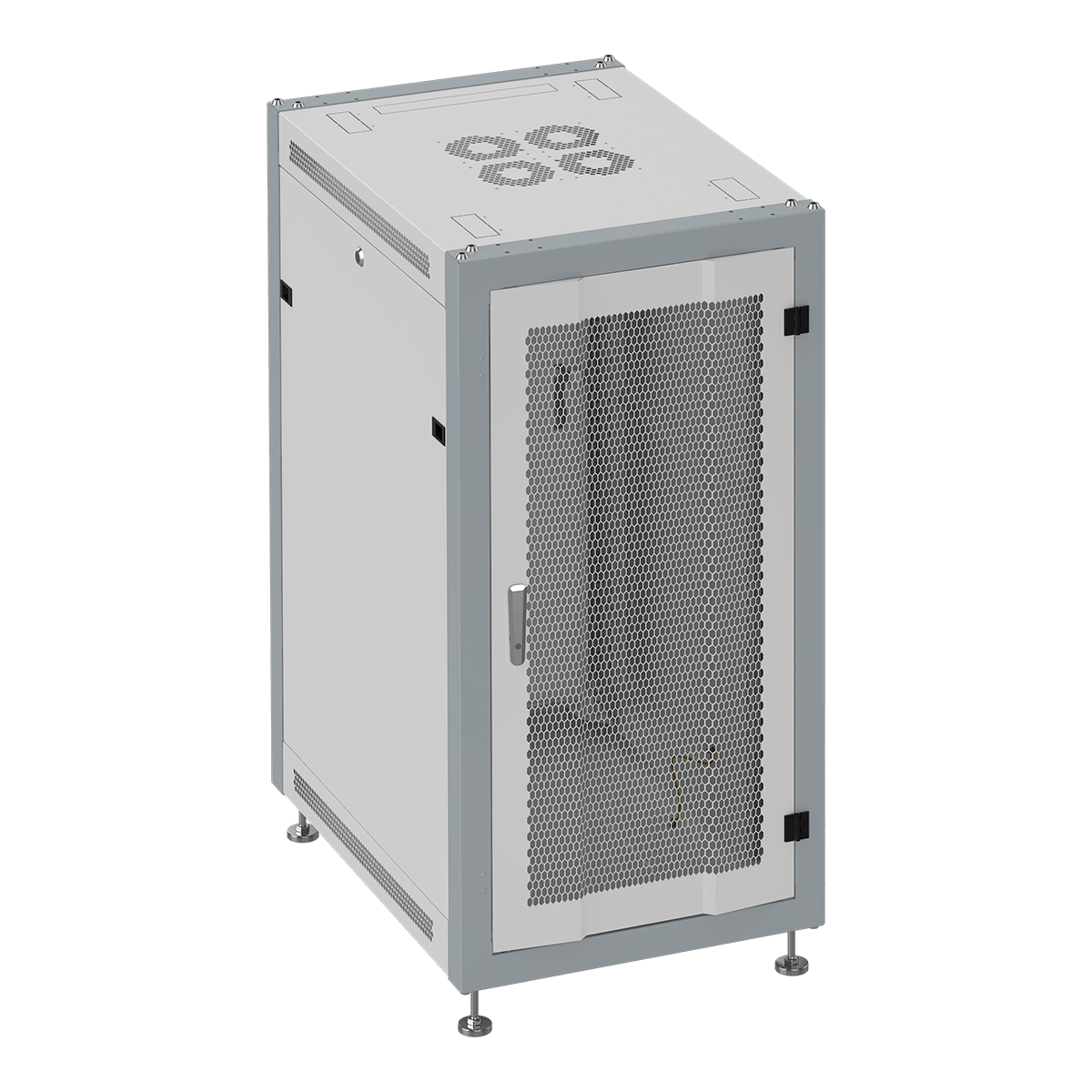 Шкаф 19 напольный 37U 600*1000 для построения телекоммуникационных и серверных сетей внутри помещений. За счет современного дизайна и компактных размеров, шкафы серии FC 6037.732 предназначены для установки в офисных и публичных помещениях. Передняя и задняя двери – металлические. Для естественной вентиляции передняя дверь выполнена с перфорацией.