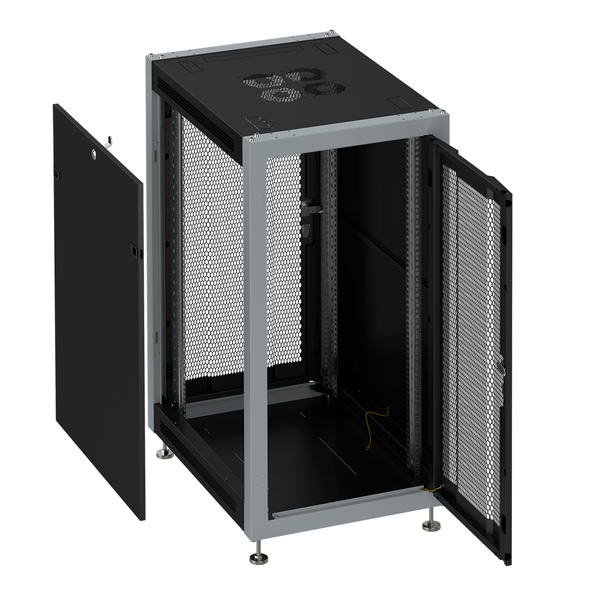 Съемные боковые панели на замках, обеспечивают контроль доступа к телеком оборудованию.