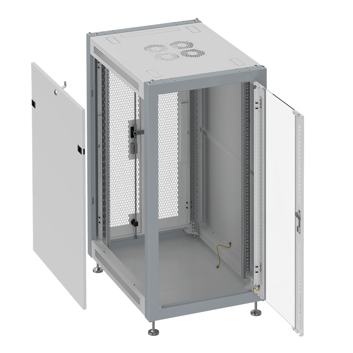 Съемные боковые панели оснащенные замками, обеспечивают контроль доступа к телеком оборудованию.