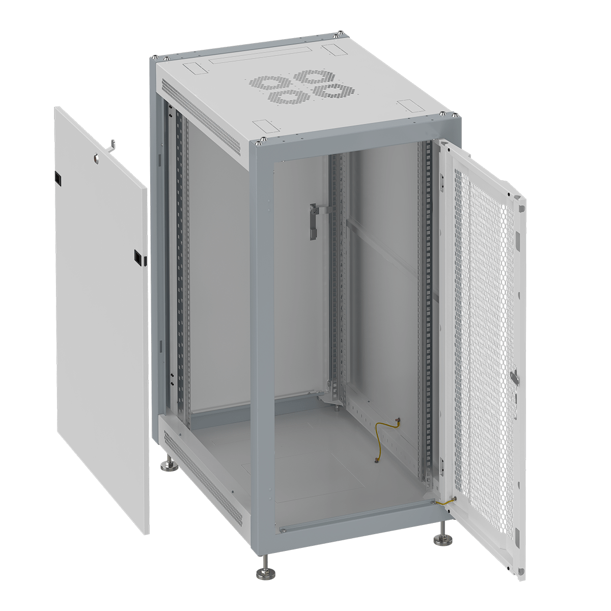 Съемные боковые панели на замках, гарантируют контроль доступа к установленному оборудованию.
