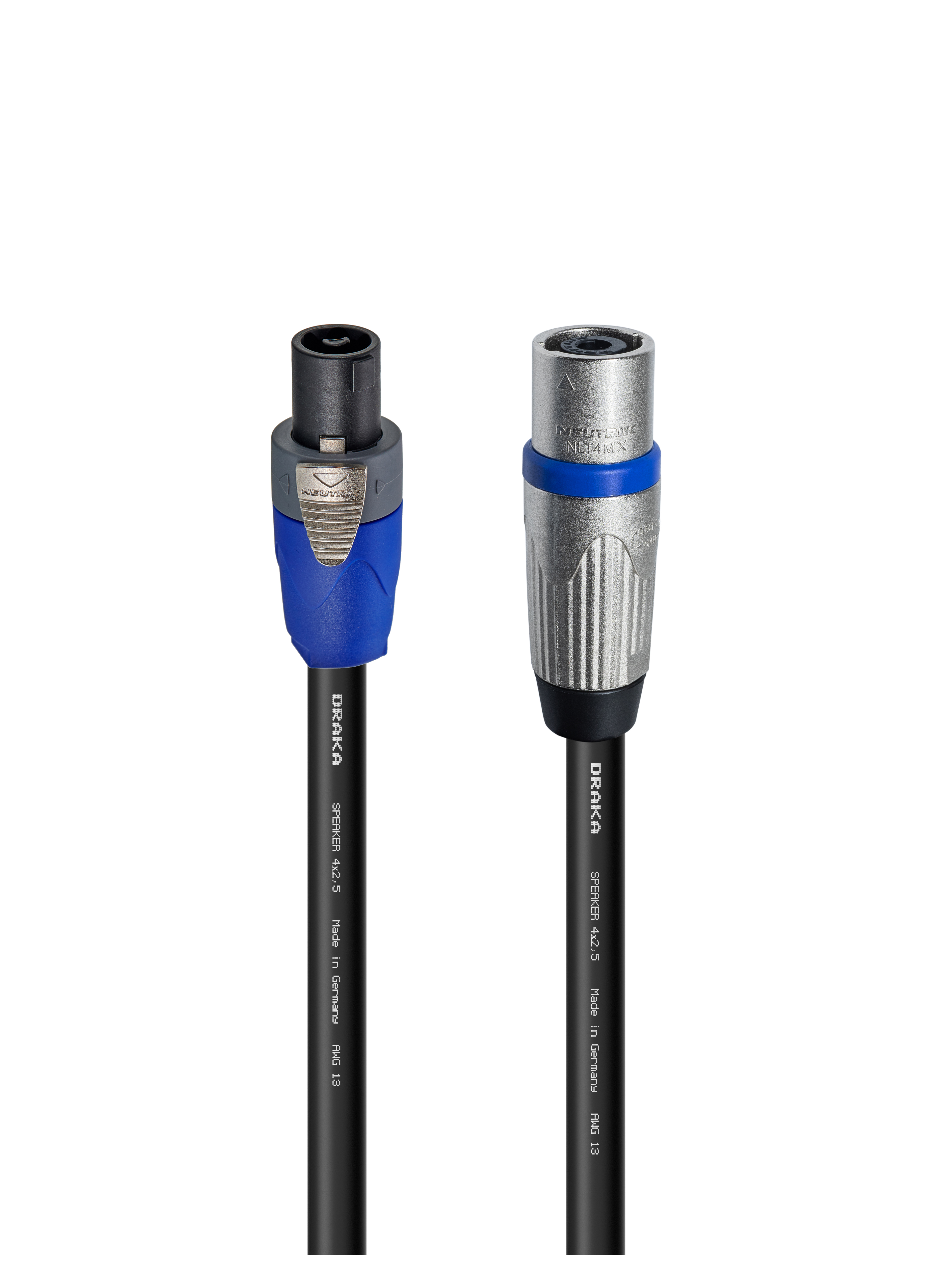 Акустический переходной кабель, Speakon4 гнездо > Speakon4 штекер. Комплектующие: разъемы Neutrik NL4FX; NLT4MX; Кабель Draka SPEAKER 4х2,5; цвет: черный.