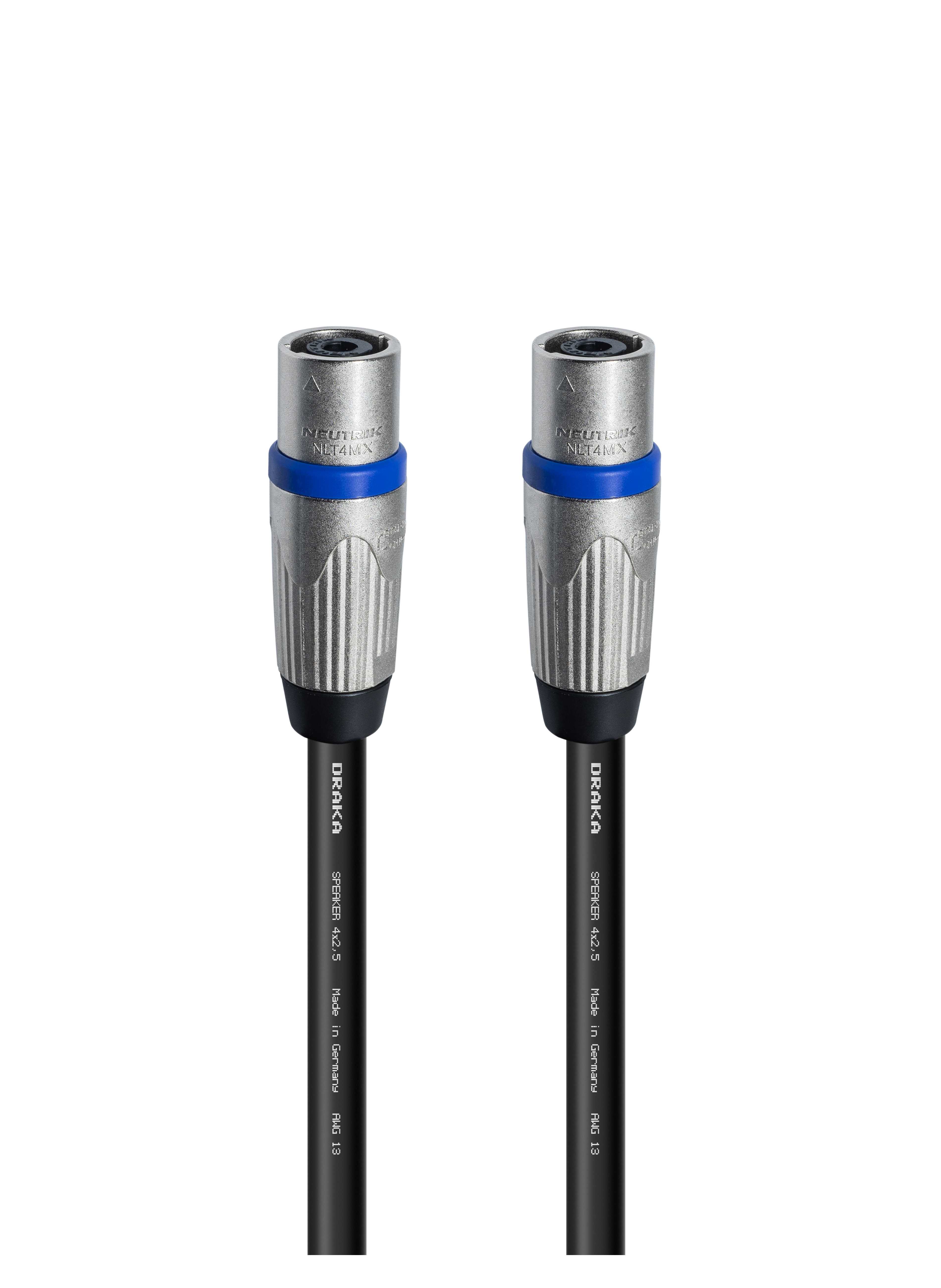 Акустический переходной кабель, Speakon4 штекер > Speakon4 штекер. Комплектующие: разъемы Neutrik NLT4MX; Кабель Draka SPEAKER 4х2,5; цвет: черный.