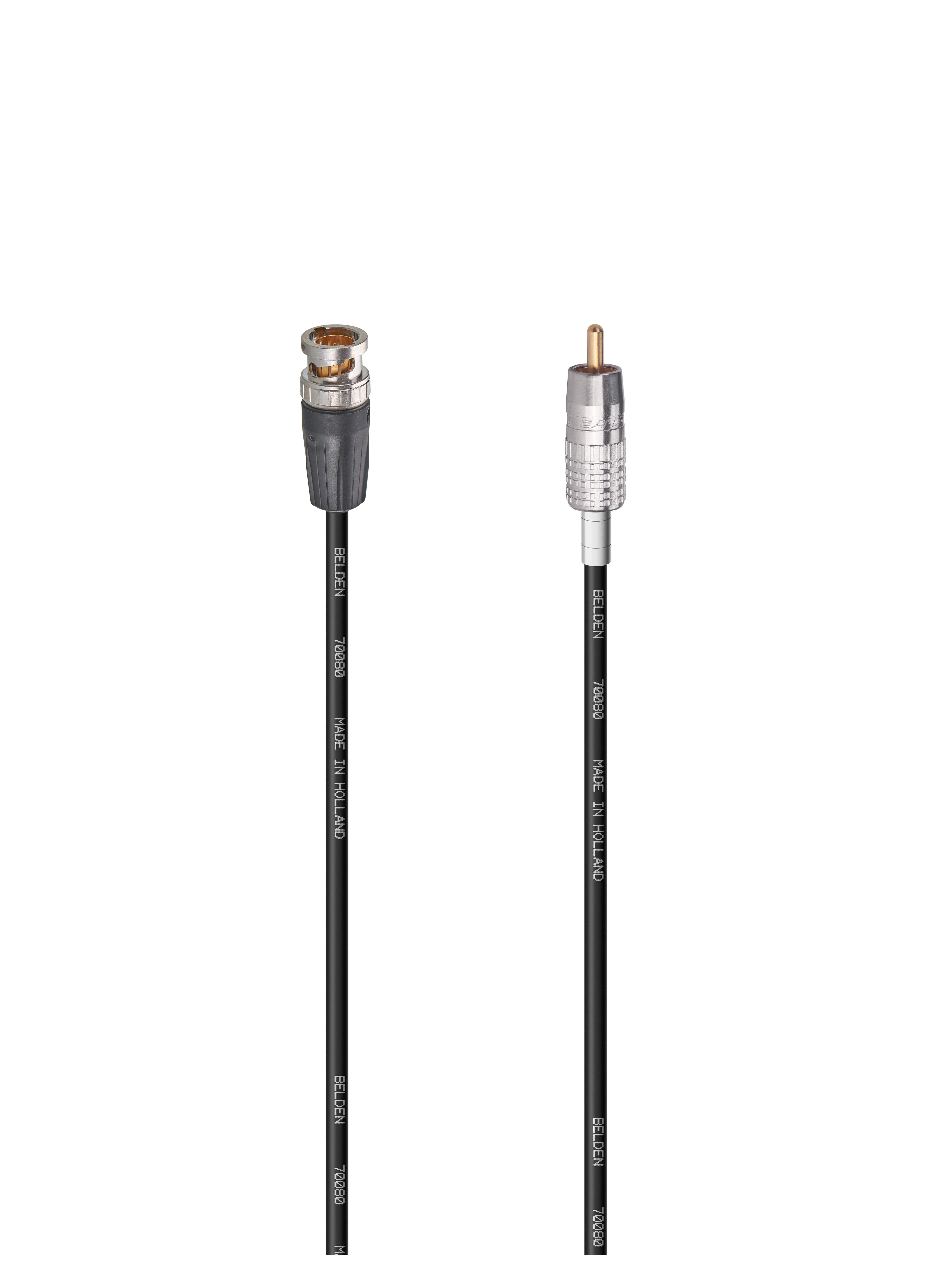 Цифровой аудио кабель S/PDIF, 75 Ом, Compact, BNC штекер > RCA штекер. Комплектующие: разъемы Neutrik NBNC75BFG7; Canare RCAP-C4A, Кабель коаксиальный Belden 70080; цвет: черный.
