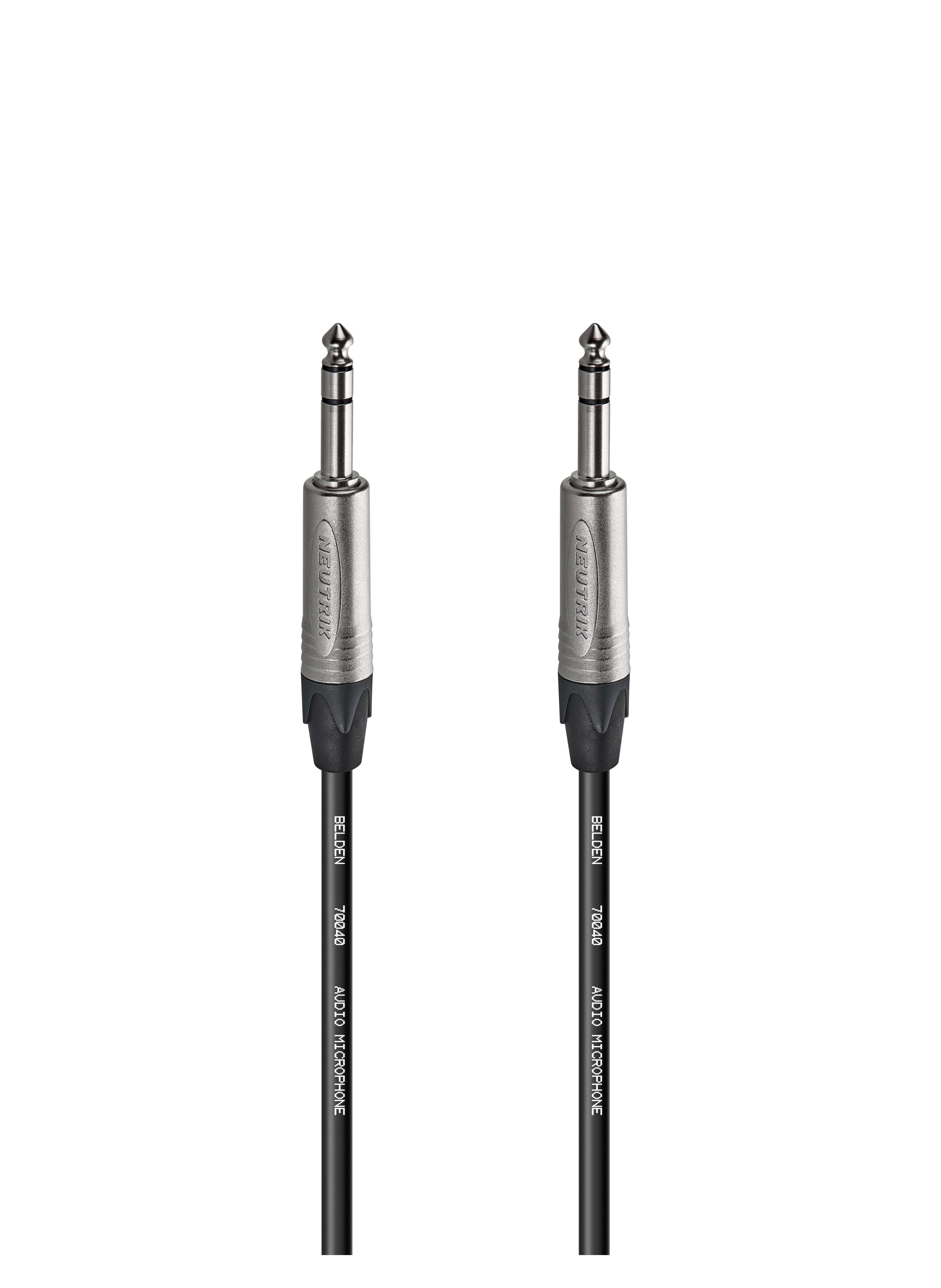 Балансный аудио кабель, Standart, Jack 6.3 stereo штекер > Jack 6.3 stereo штекер. Комплектующие: разъемы Neutrik NP3X; Кабель Belden 70040; цвет: черный