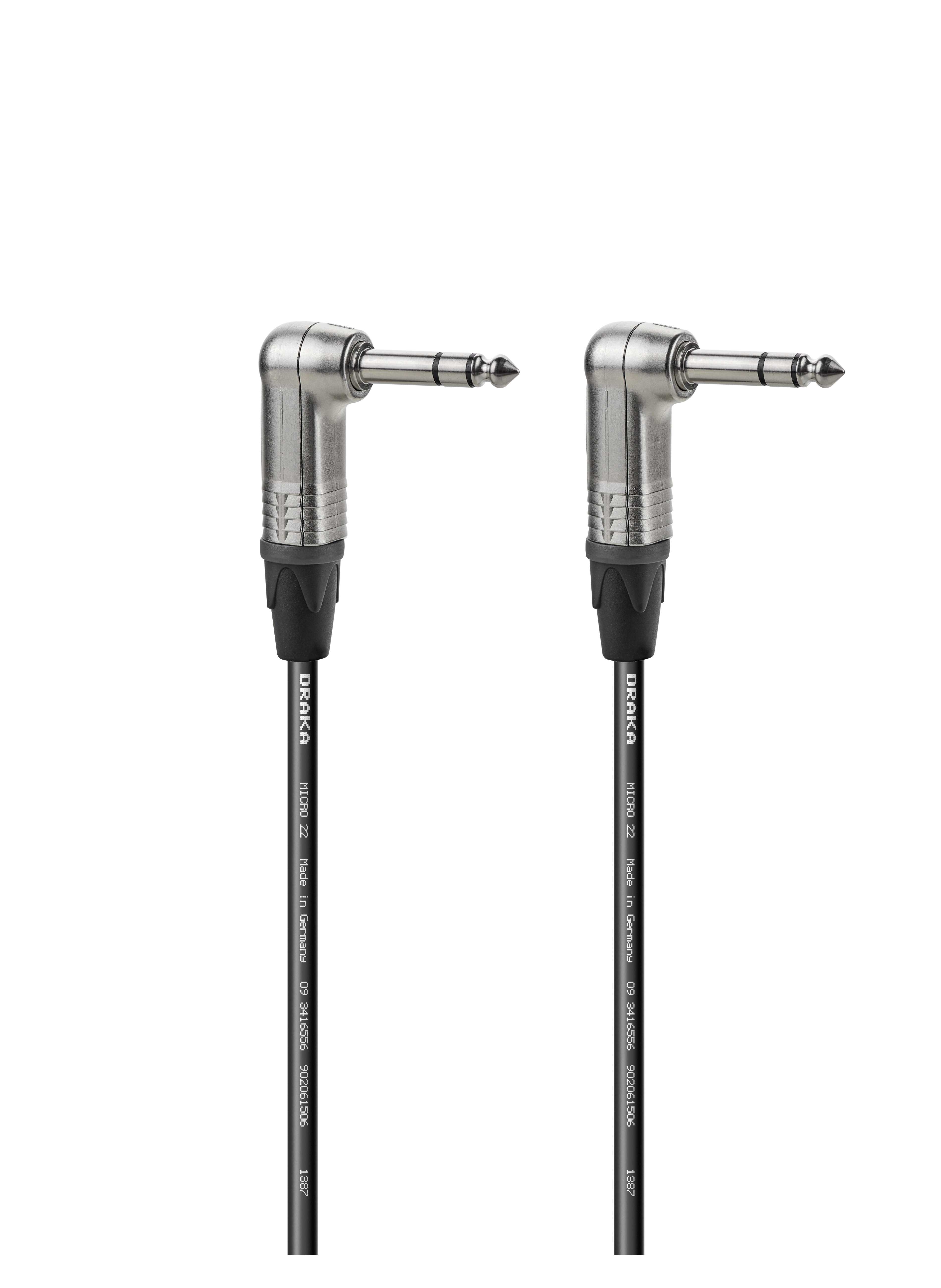 Микрофонный кабель, Standart, Jack 6.3 stereo штекер угловой > Jack 6.3 stereo штекер угловой. Комплектующие: разъемы Neutrik NP3RX; Кабель Draka DR MICRO 22; цвет: черный.