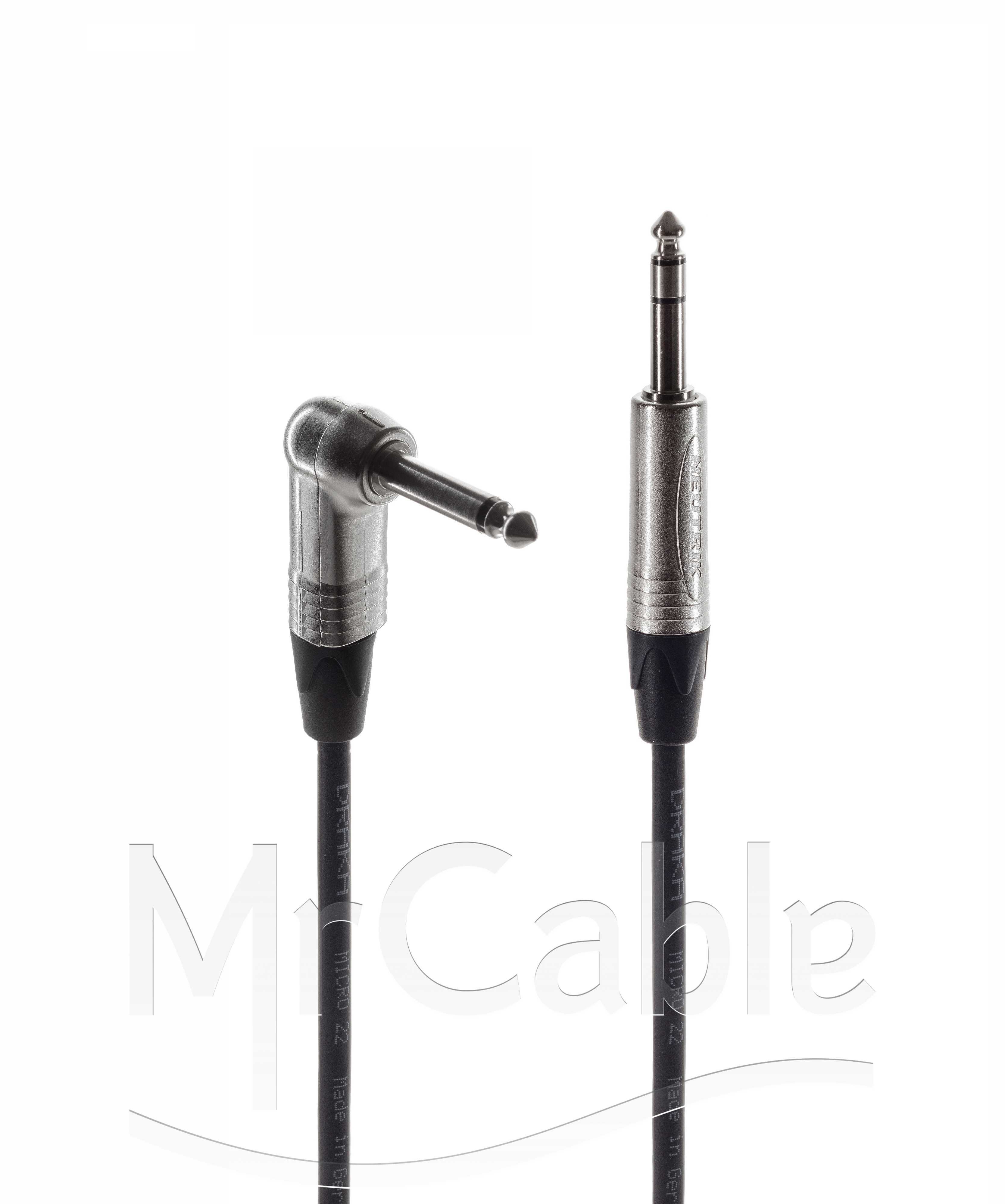 Микрофонный кабель, Standart, Jack 6.3 mono штекер угловой > Jack 6.3 stereo штекер. Комплектующие: разъемы Neutrik NP2RX; Neutrik NP3X; Кабель Draka DR MICRO 22; цвет: черный.