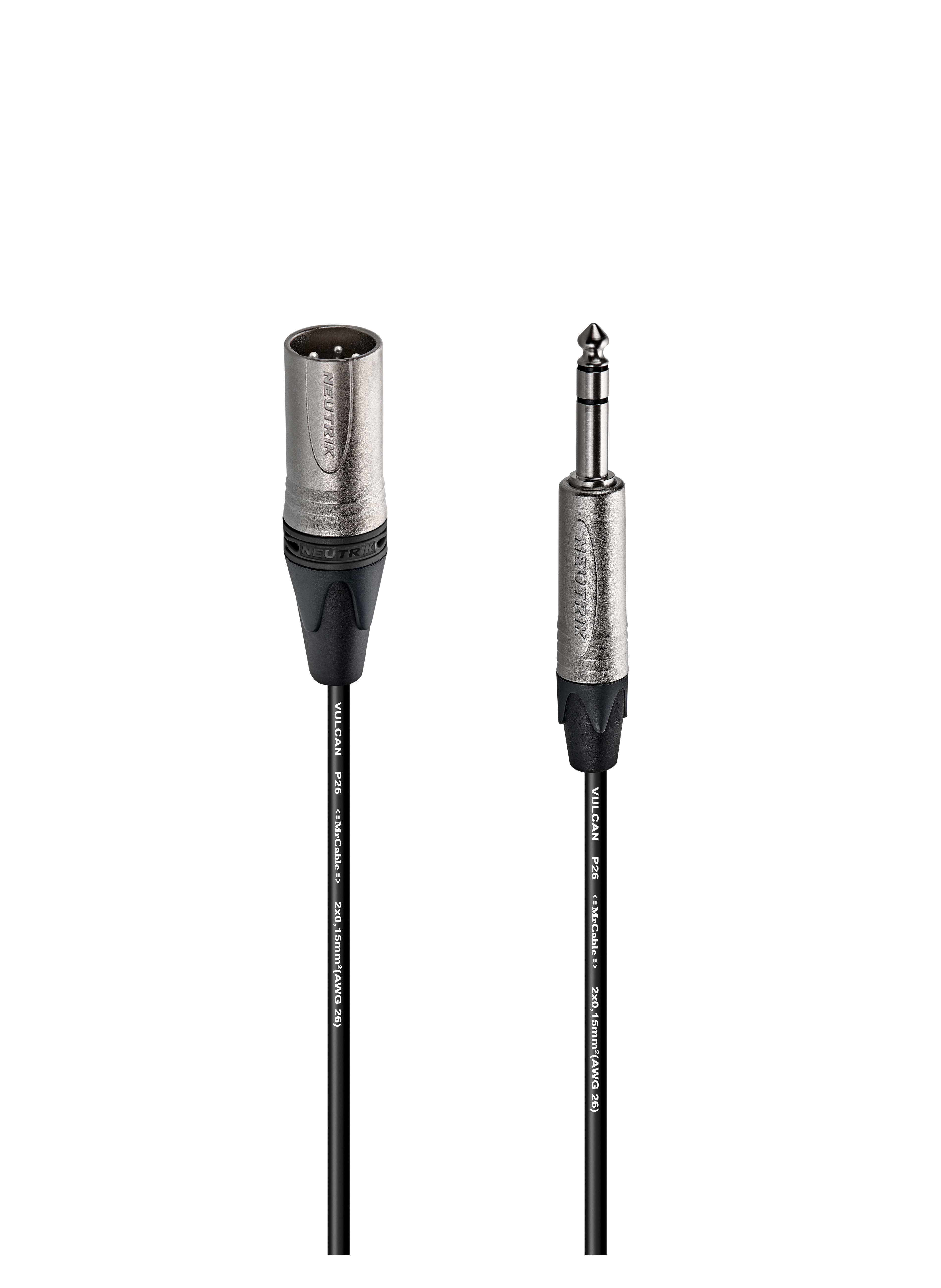 Микрофонный кабель, Compact, XLR3 штекер > Jack 6.3 stereo штекер. Комплектующие: разъемы Neutrik NC3MXX; Neutrik NP3X; Кабель MrCable VULCAN P26; цвет: черный
