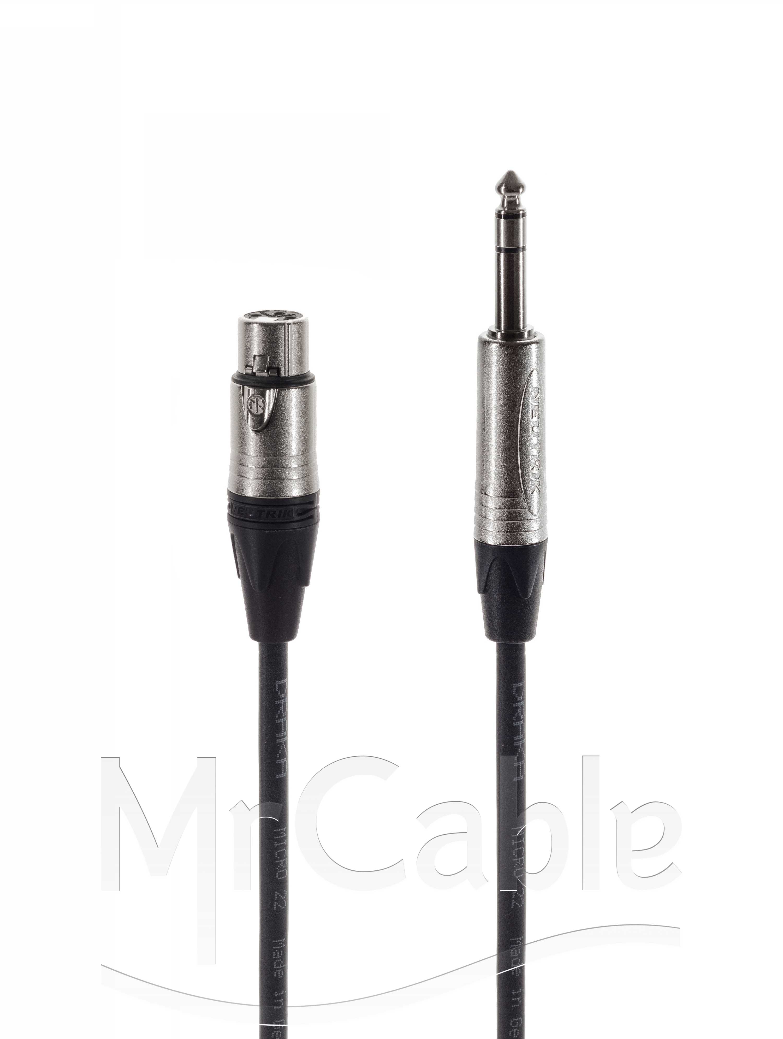 Микрофонный кабель, Standart, XLR3 гнездо > Jack 6.3 stereo штекер. Комплектующие: разъемы Neutrik NC3FXX; Neutrik NP3X; Кабель Draka DR MICRO 22; цвет: черный.