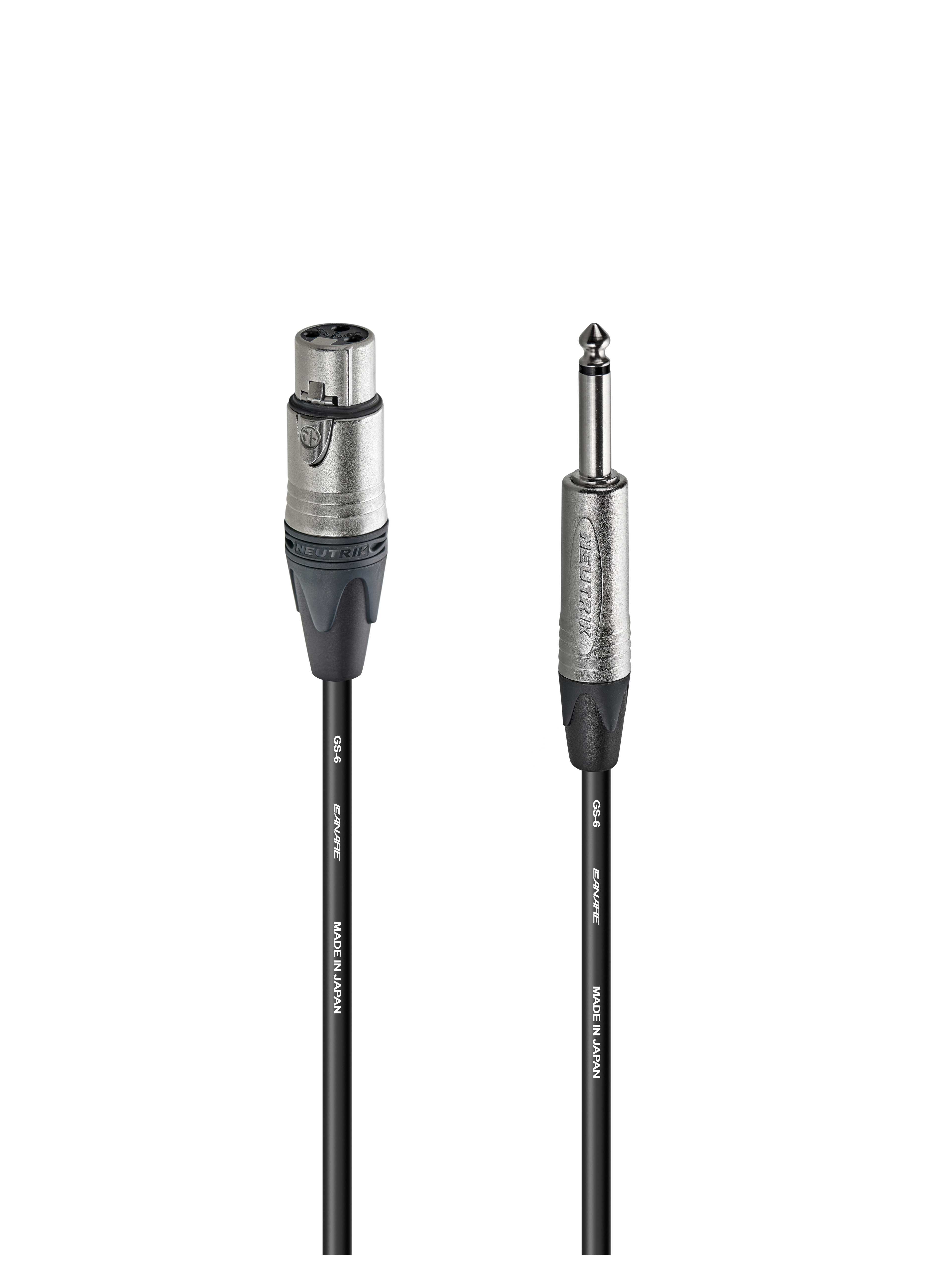 Микрофонный кабель, Premium, XLR3 гнездо > Jack 6.3 mono штекер. Комплектующие: разъемы Neutrik NC3FXX; Neutrik NP2X; Кабель Canare GS-6; цвет: черный.