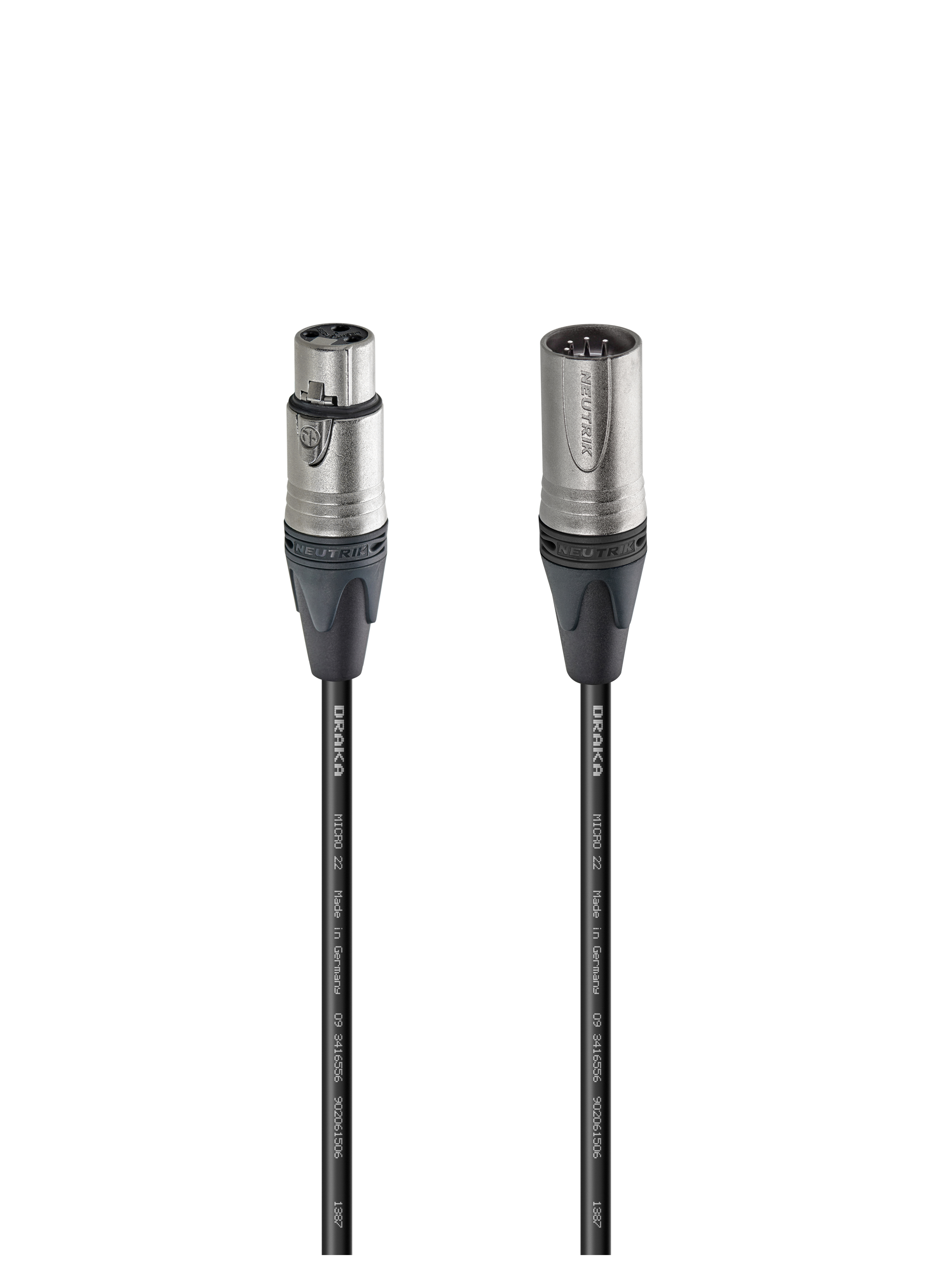 Балансный переходной аудио кабель, Standart, XLR3 гнездо > XLR5 штекер. Комплектующие: разъемы Neutrik NC3FXX; NC5MXX; Кабель Draka DR MICRO 22; цвет: черный.