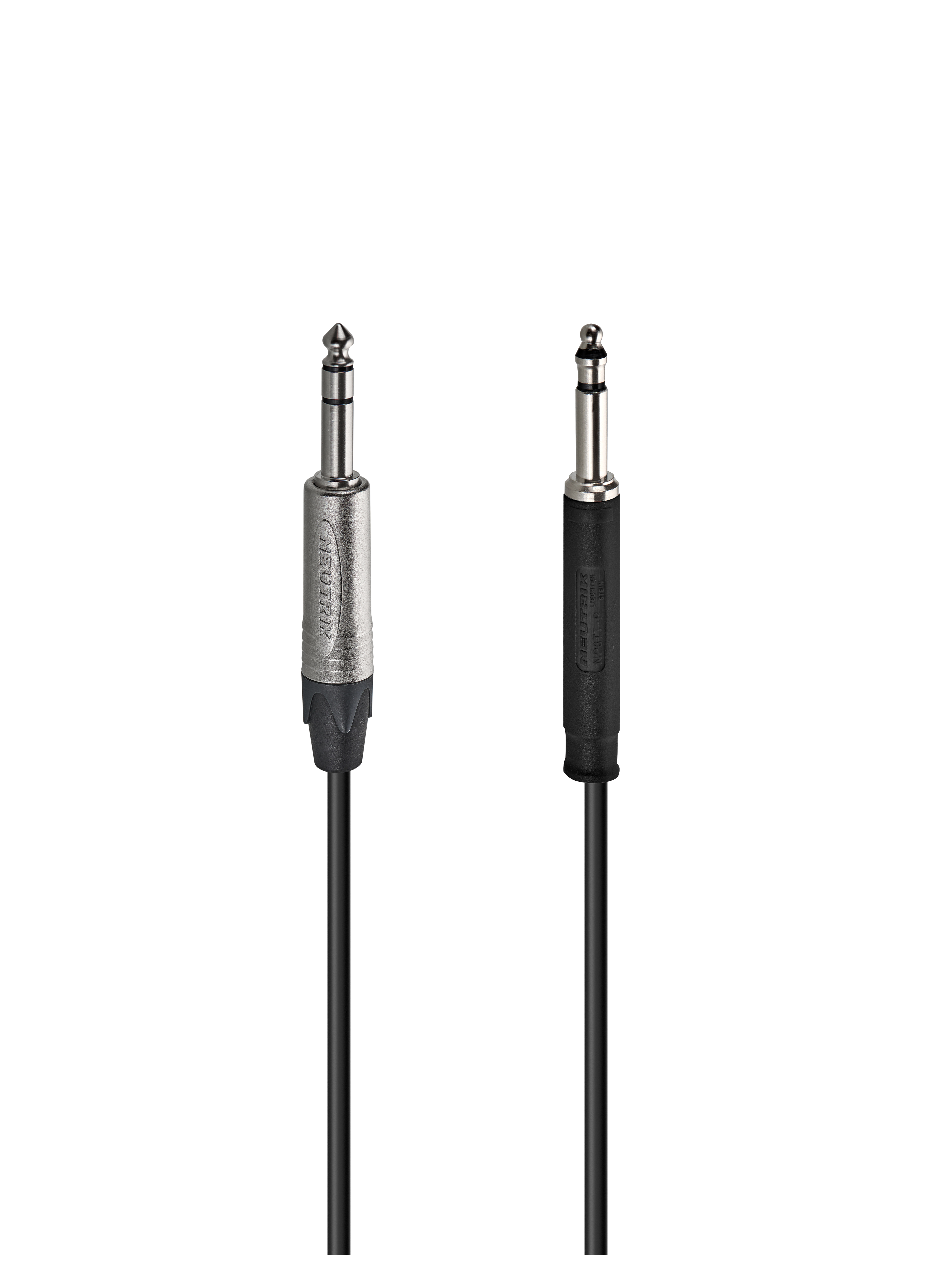 Балансный переходной аудио кабель, Standart, Jack 6.3 stereo штекер > Bantam. Комплектующие: разъемы Neutrik NP3X; NP3TT-P-B; Кабель MrCable VULCAN P26; цвет: черный.