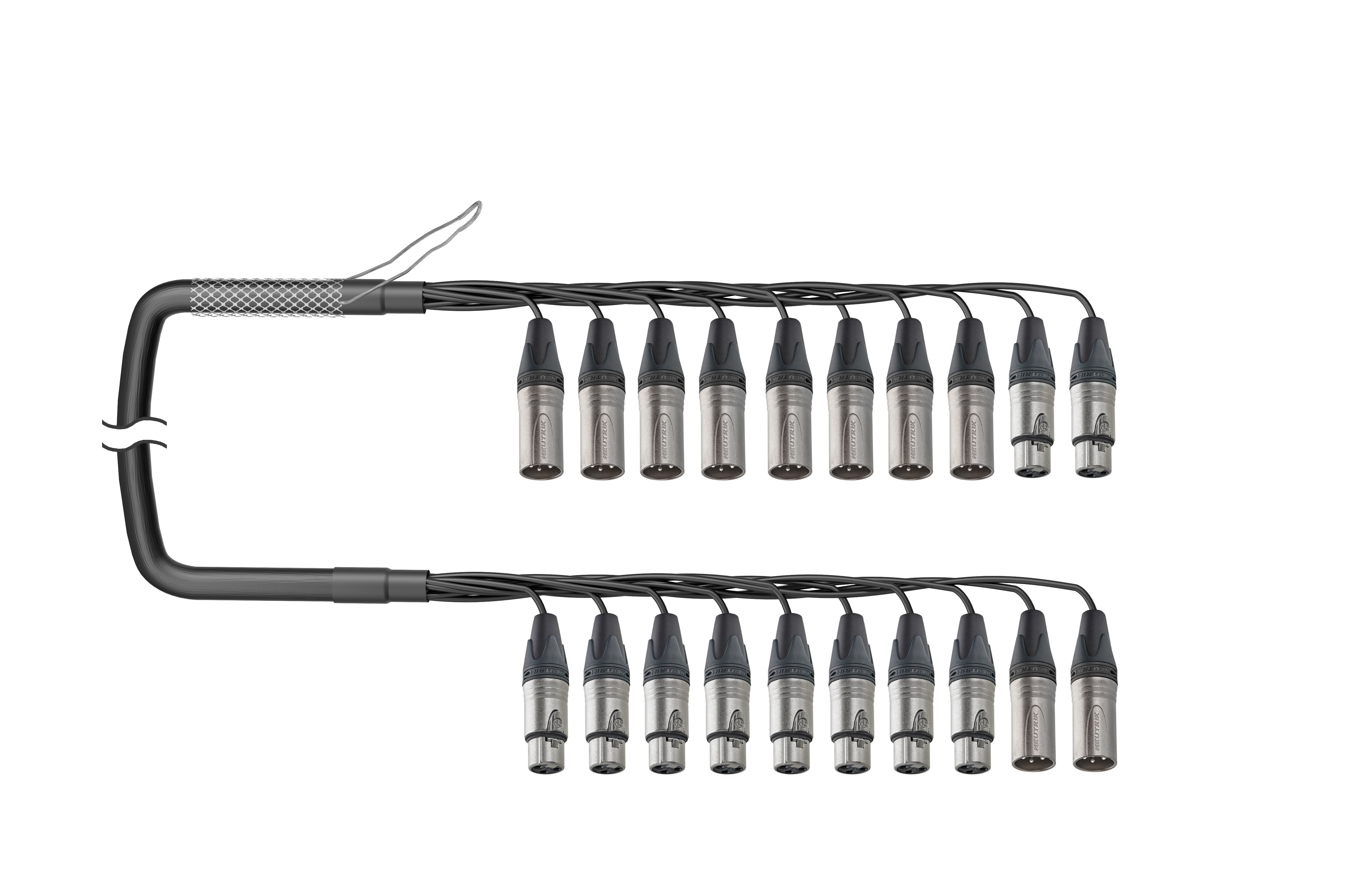10-кан. (8-IN/2-OUT) аудиомультикорный кабель, Standart, коса (8х XLR3 штекер/2х XLR3 гнездо), защитная корзина > коса (8х XLR3 гнездо/2х XLR3 штекер). Комплектующие: разъемы Neutrik NC3MXX; NC3FXX; Мультикор аналоговый Canare MR202-12AT; цвет: черный.