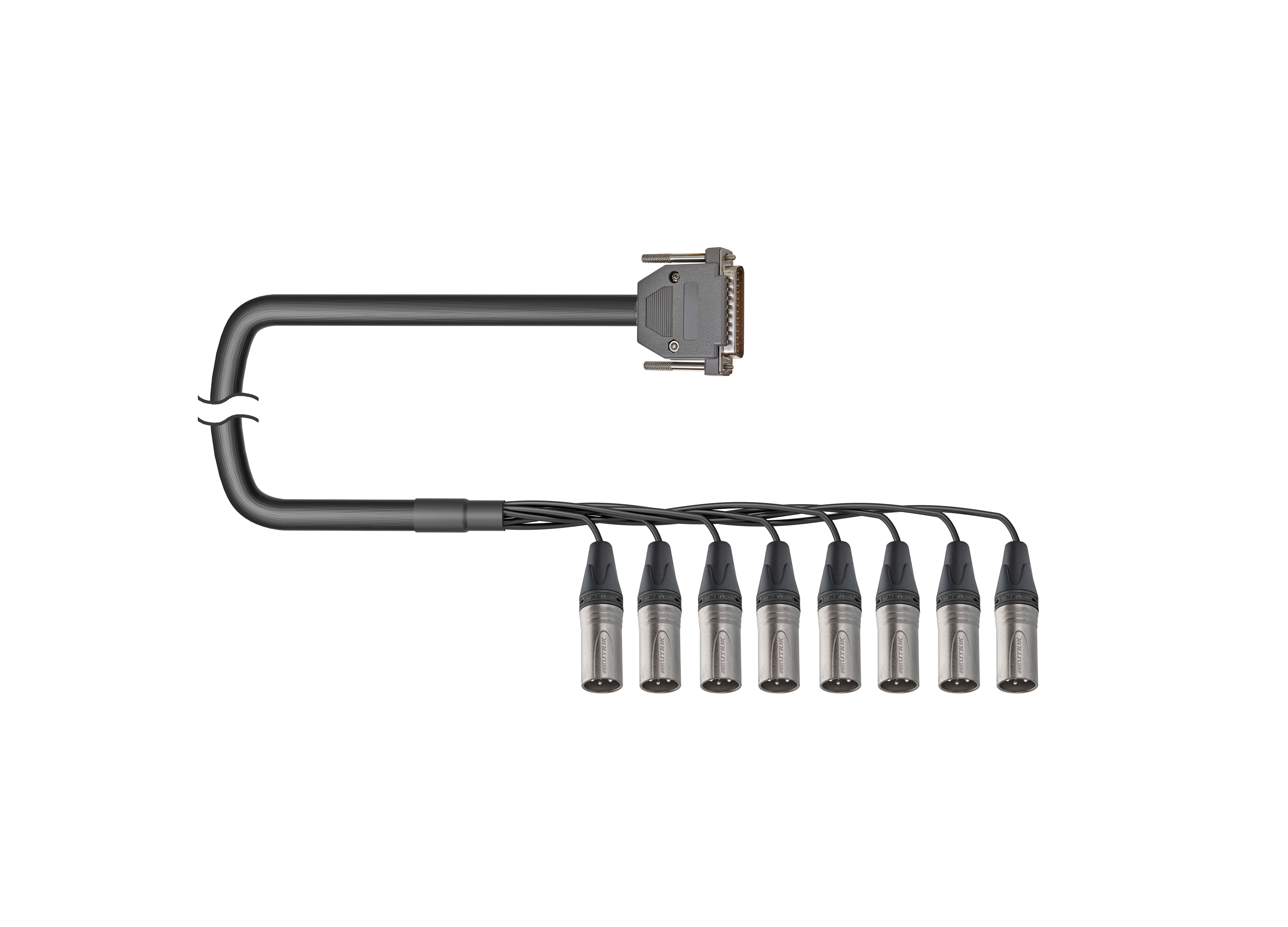 8-кан. аудиокабель, Standart, D-SUB 25 пин штекер > коса (8х XLR3 штекер). Комплектующие: разъемы D-SUB 25; Neutrik NC3MXX; Мультикор аналоговый Canare MR202-8AT; цвет: черный.