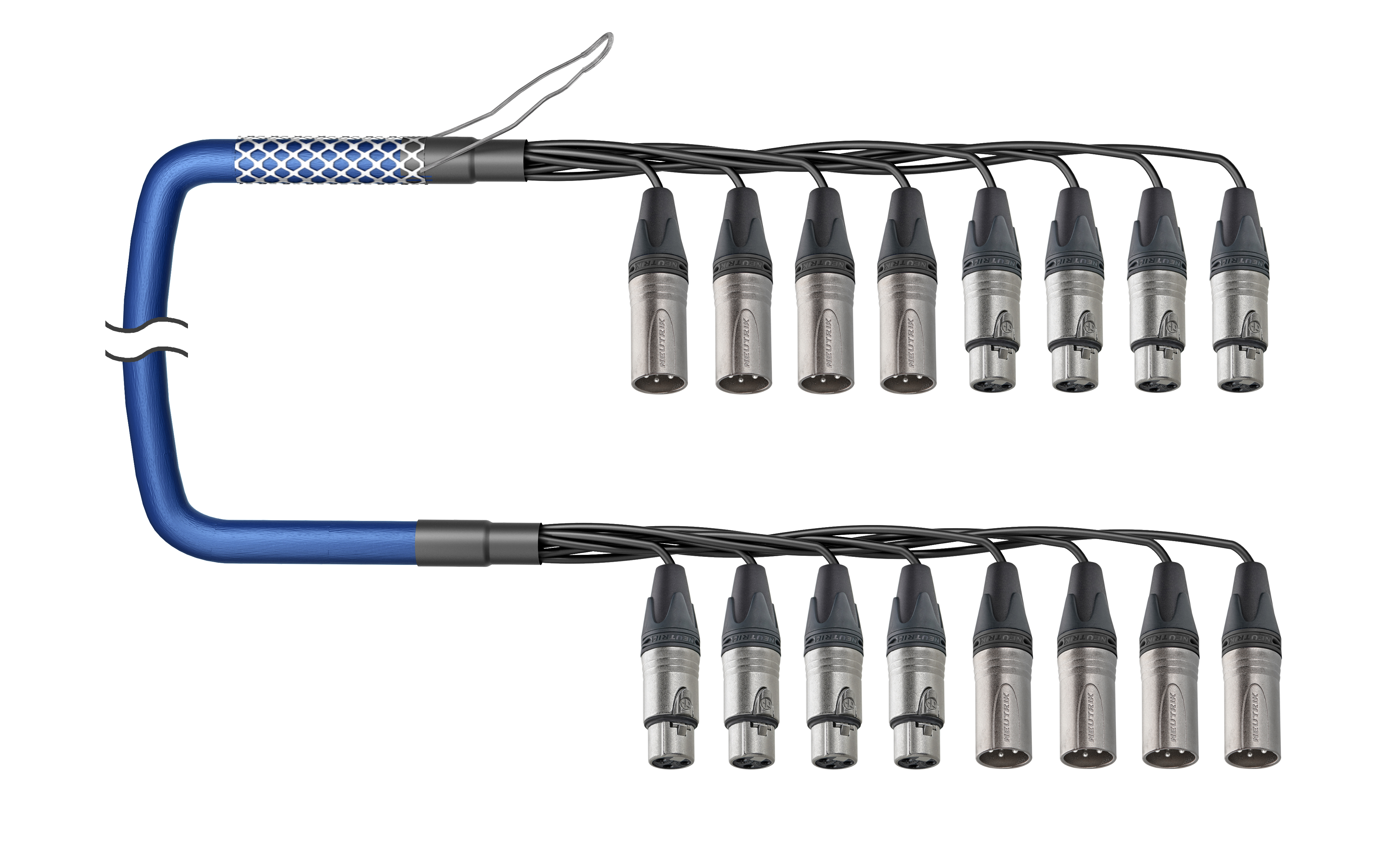 8-кан. (4-IN/4-OUT) цифровой аудиокабель, AES/EBU, Standart, коса (4х XLR3 штекер/4х XLR гнездо), защитная корзина > коса (4х XLR гнездо/4х XLR3 штекер). Комплектующие: разъемы Neutrik NC3MXX; NC3FXX; Мультикор цифровой AES/EBU, Canare DA202F-8P; цвет: синий.