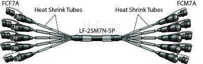 Комбинированный гибридный оптоволоконный кабель SMPTE/ARIB, «5х FCF7A штекер - 5х FCM7A гнездо». Структура: тип разъемов (гибридные разъемы SMPTE 304M FUW-PUW Lemo), класс защиты IP68; тип кабеля SMPTE 311 (LF-2SM7N-5P), тип волокна - одномодовый 9/125, питание - 2х0.61 мм² (1х21*0.18 мм) AWG 20, управление - 2х0.18 мм² (1х7*0.18 мм) AWG 25, общий экран - плетеный, луженая медь (91%), силовой элемент - стальной корд, внеш. оболочка износостойкий (PVC); цвет: черный