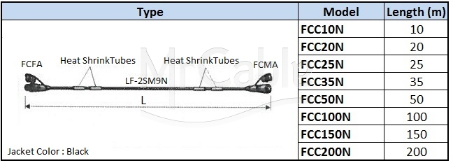 Комбинированный оптоволоконный кабель SMPTE/ARIB, «FCFA штекер - FCMA гнездо». Структура: тип разъемов (гибридные разъемы SMPTE 304M FUW-PUW Lemo), класс защиты IP68; тип кабеля SMPTE 311 (LF-2SM9N), тип волокна - одномодовый 9/125, питание - 4х0.61 мм² (1х21*0.18 мм) AWG 20, управление - 2х0.18 мм² (1х7*0.18 мм) AWG 25, общий экран - плетеный, луженая медь (91%), силовой элемент - стальной корд, внеш. диаметр 9.2 мм, внеш. оболочка износостойкий (PVC); цвет: черный