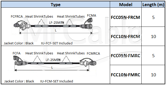 Комбинированный оптоволоконный кабель SMPTE/ARIB (с панельнвм разъемом), «FCFA штекер кабельный - FCMRCA гнездо панельный». Структура: тип разъемов (гибридные разъемы SMPTE 304M FUW-PEW Lemo), класс защиты IP68; тип кабеля SMPTE 311 (LF-2SM9N), тип волокна - одномодовый 9/125, питание - 2х0.61 мм² (1х21*0.18 мм) AWG 20, управление - 2х0.18 мм² (1х7*0.18 мм) AWG 25, общий экран - плетеный, луженая медь (91%), силовой элемент - стальной корд, внеш. диаметр 9.2 мм, внеш. оболочка износостойкий (PVC); цвет: черный