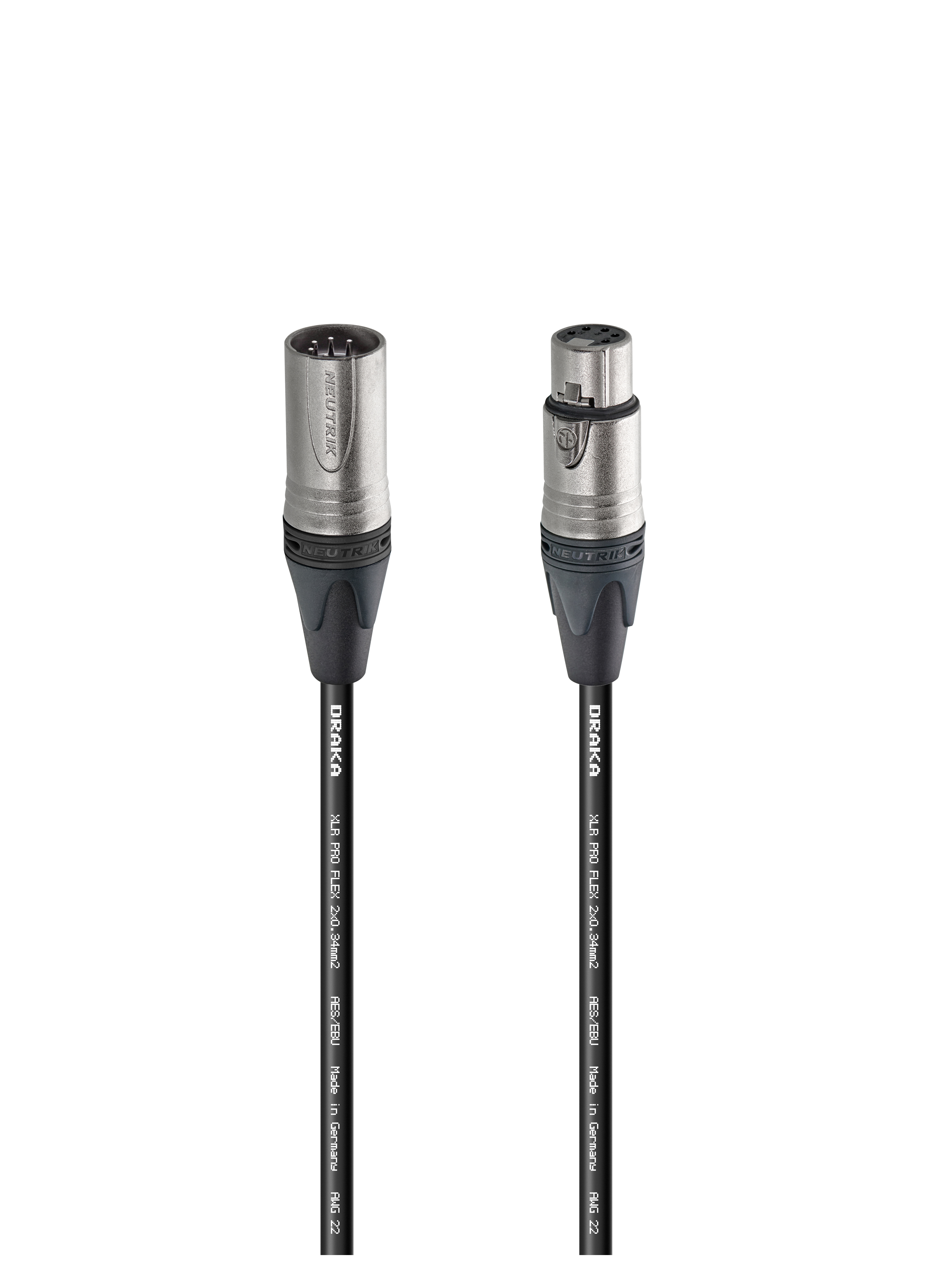 Цифровой кабель DMX, Premium, XLR5 штекер > XLR5 гнездо. Комплектующие: разъемы Neutrik NC5MXX; Neutrik NC5FXX; Кабель DRAKA XLR PRO FLEX 2x0.34mm2 BK; цвет: черный.