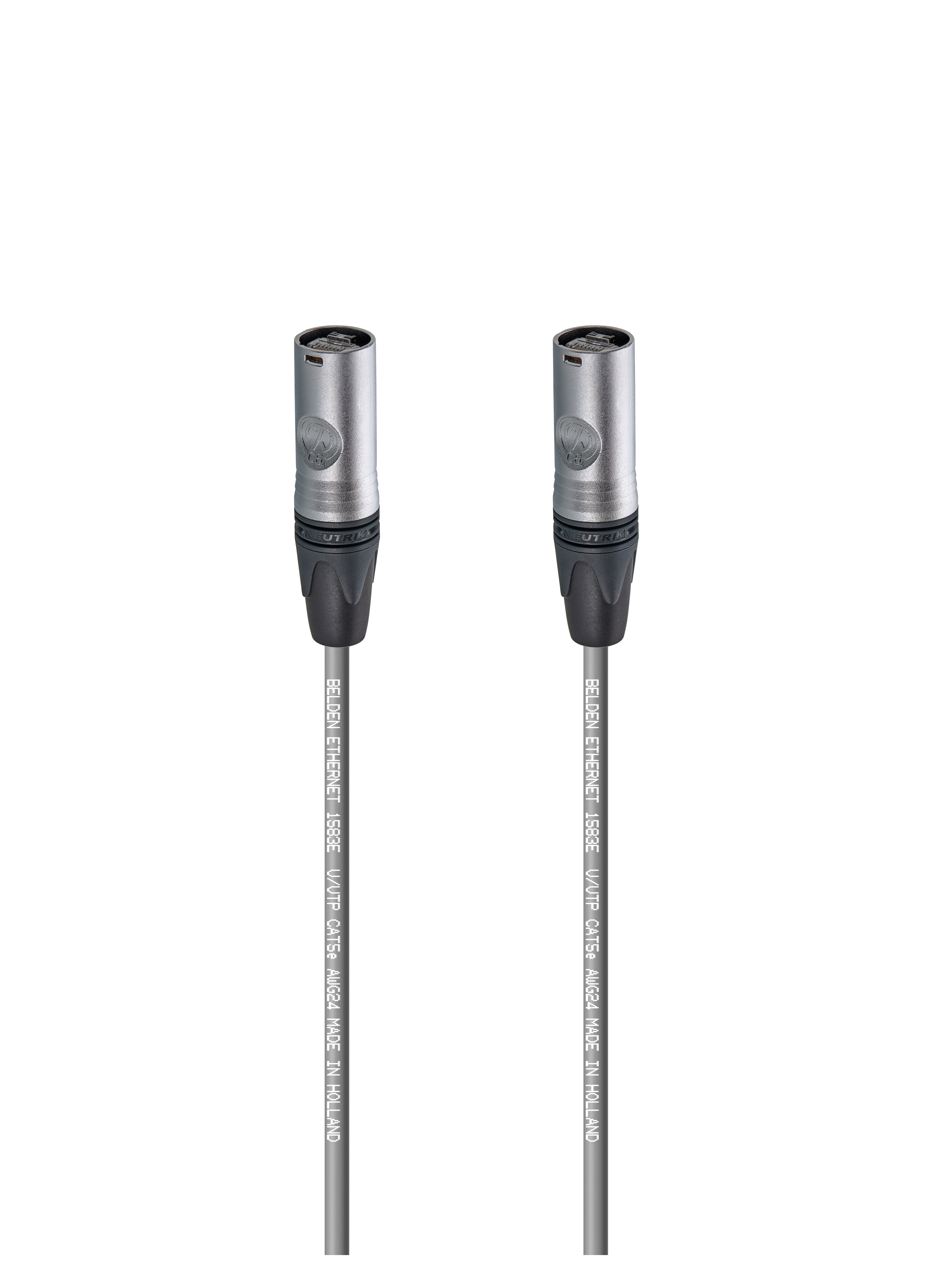 Кабель Ethernet, категория CAT 5e, XLR-RJ45 штекер > XLR-RJ45 штекер. Комплектующие: разъемы (XLR-RJ45) Neutrik NE8MX6-T; Кабель "Витая пара" Belden 1583E; цвет: серый