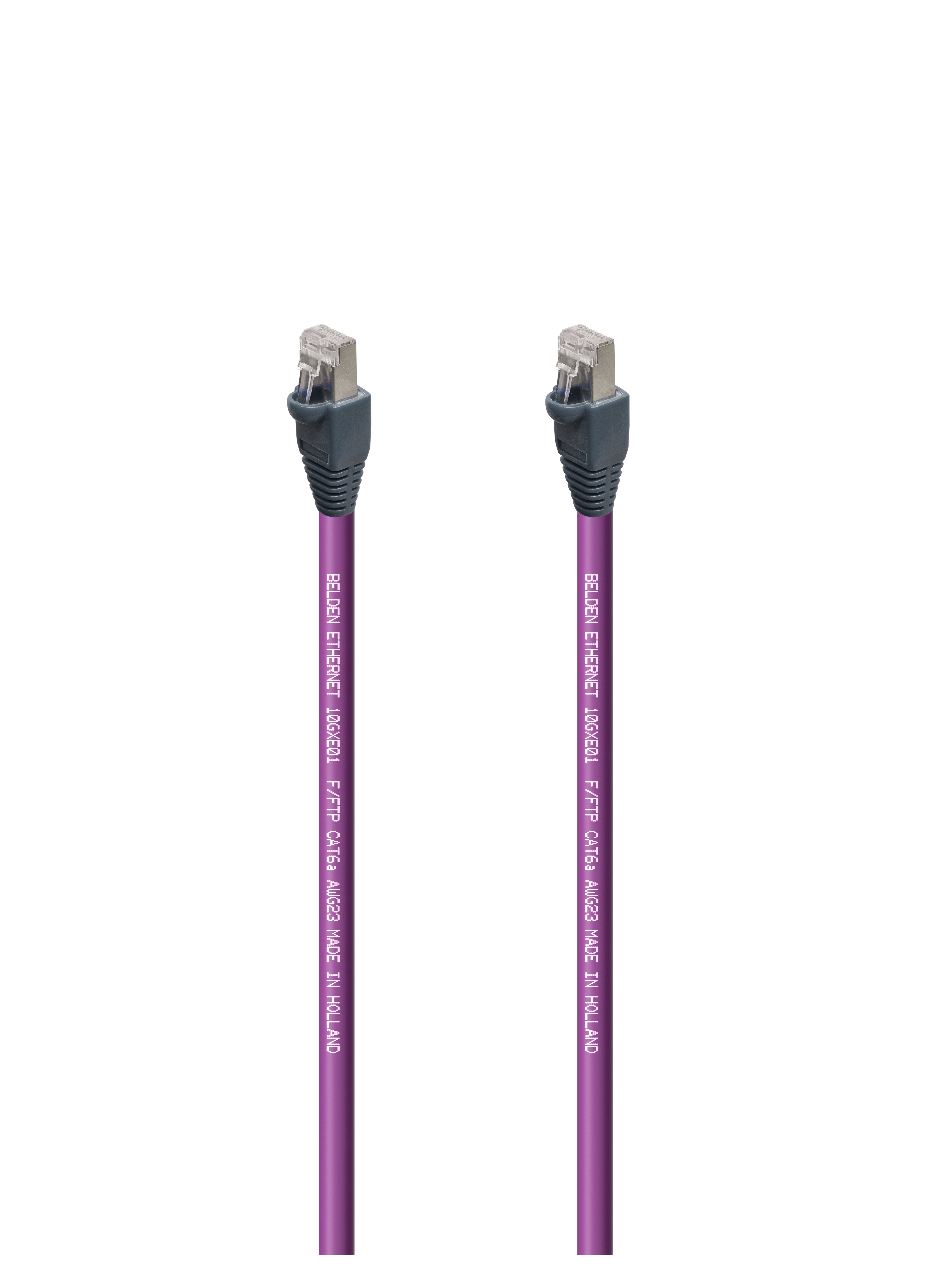 Кабель Ethernet, категория CAT 6a, RJ45 штекер > RJ45 штекер. Комплектующие: коннекторы (RJ45) Cabeus 8P8C-SH-C7(1.5)-TWP, колпачок Cabeus CAP-8-GY; Кабель "Витая пара", Belden 10GXE01; цвет: фиолетовый