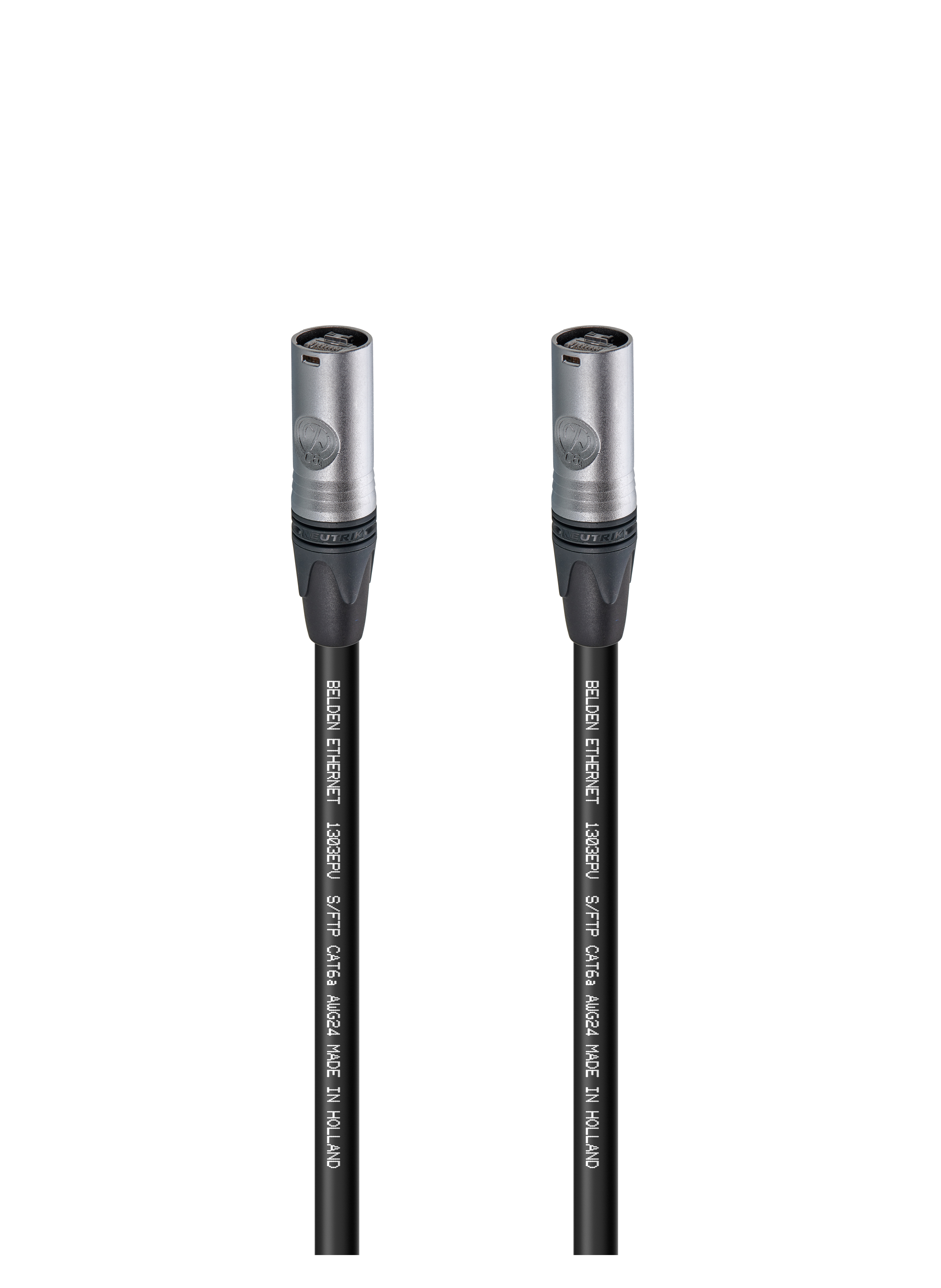 Кабель Ethernet, категория CAT 6a, повышенной прочности, XLR-RJ45 штекер > XLR-RJ45 штекер. Комплектующие: разъемы (XLR-RJ45) Neutrik NE8MX6; Кабель "Витая пара", туровый, Belden 1303EPU; цвет: черный
