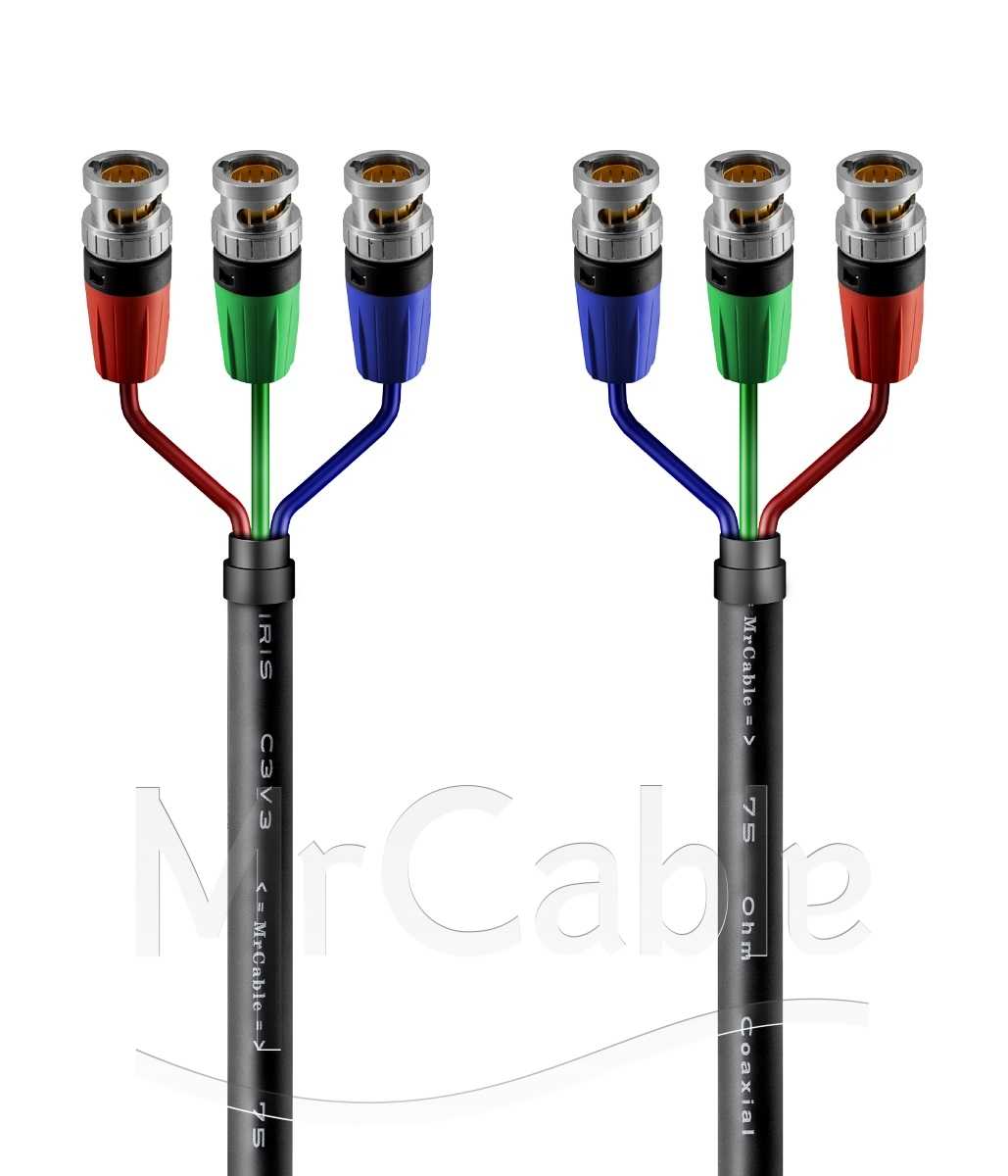 Видео кабель компонентный, RGB, 75 Ом, 3х BNC штекер > 3х BNC штекер. Комплектующие: разъемы Neutrik NBNC75BGG7, Кабель MrCable IRIS C3V3; цвет: черный.