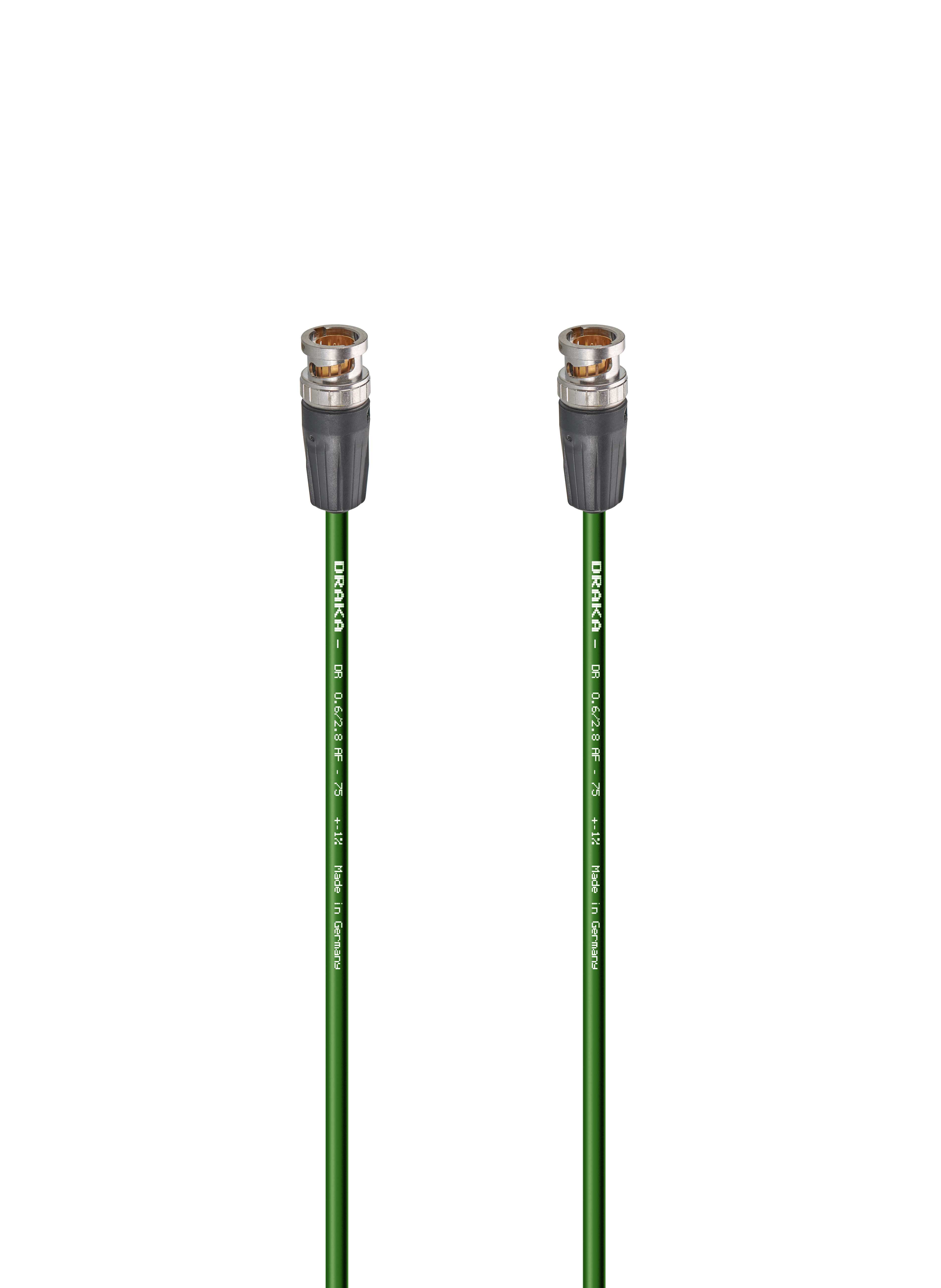 Видео кабель цифровой HD-SDI/HDTV, 75 Ом, Compact, BNC штекер > BNC штекер. Комплектующие: разъемы Neutrik NBNC75BFG7; Кабель DRAKA DR 0.6/2.8 AF-75 OHM PVC HDTV; цвет: зеленый.