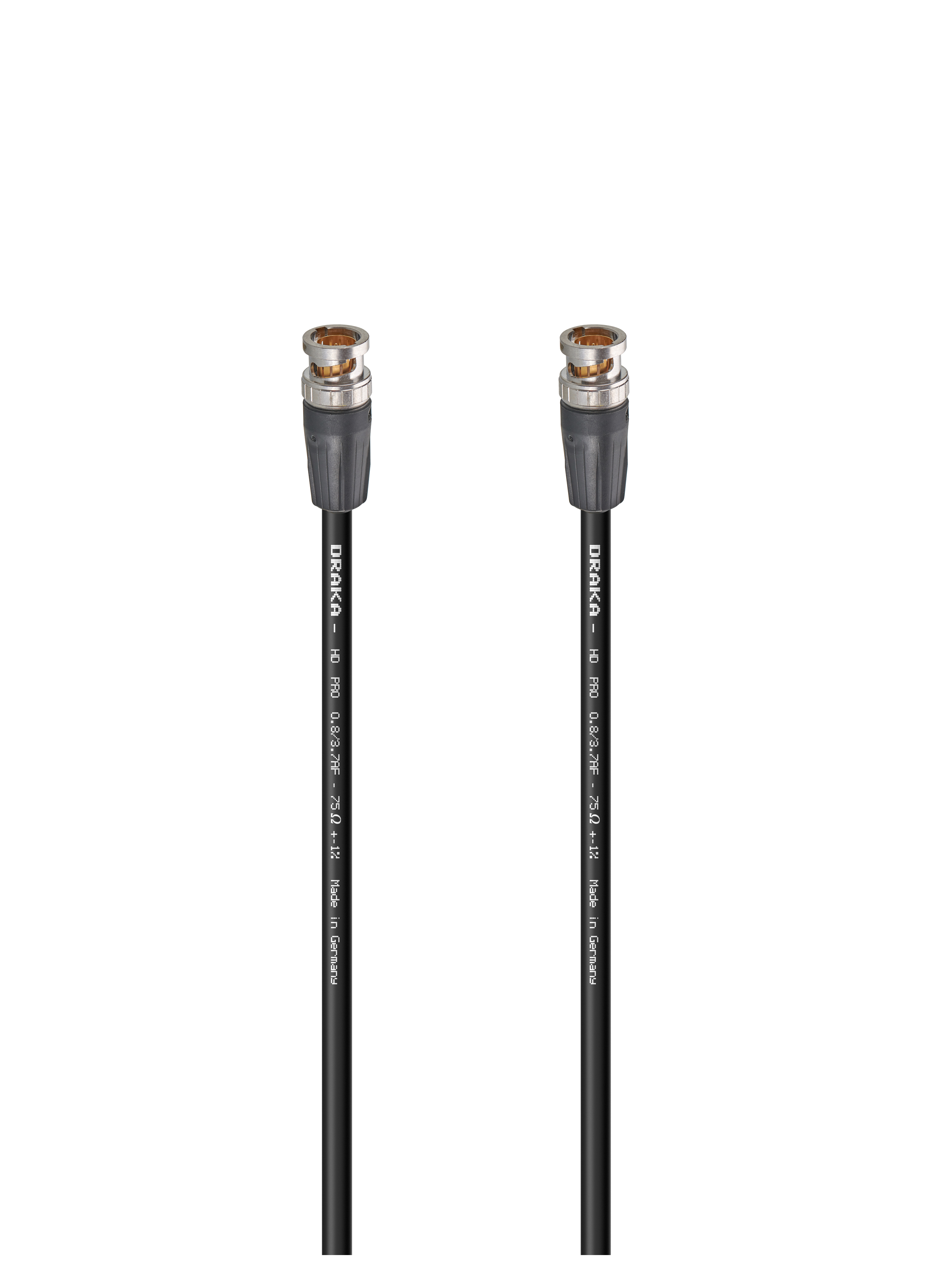 Видео кабель цифровой HD-SDI/HDTV, 75 Ом, Standart, BNC штекер > BNC штекер. Комплектующие: разъемы Neutrik NBNC75BLP9, Кабель DRAKA HD PRO 0.8/3.7AF GY LSHF; цвет: черный.
