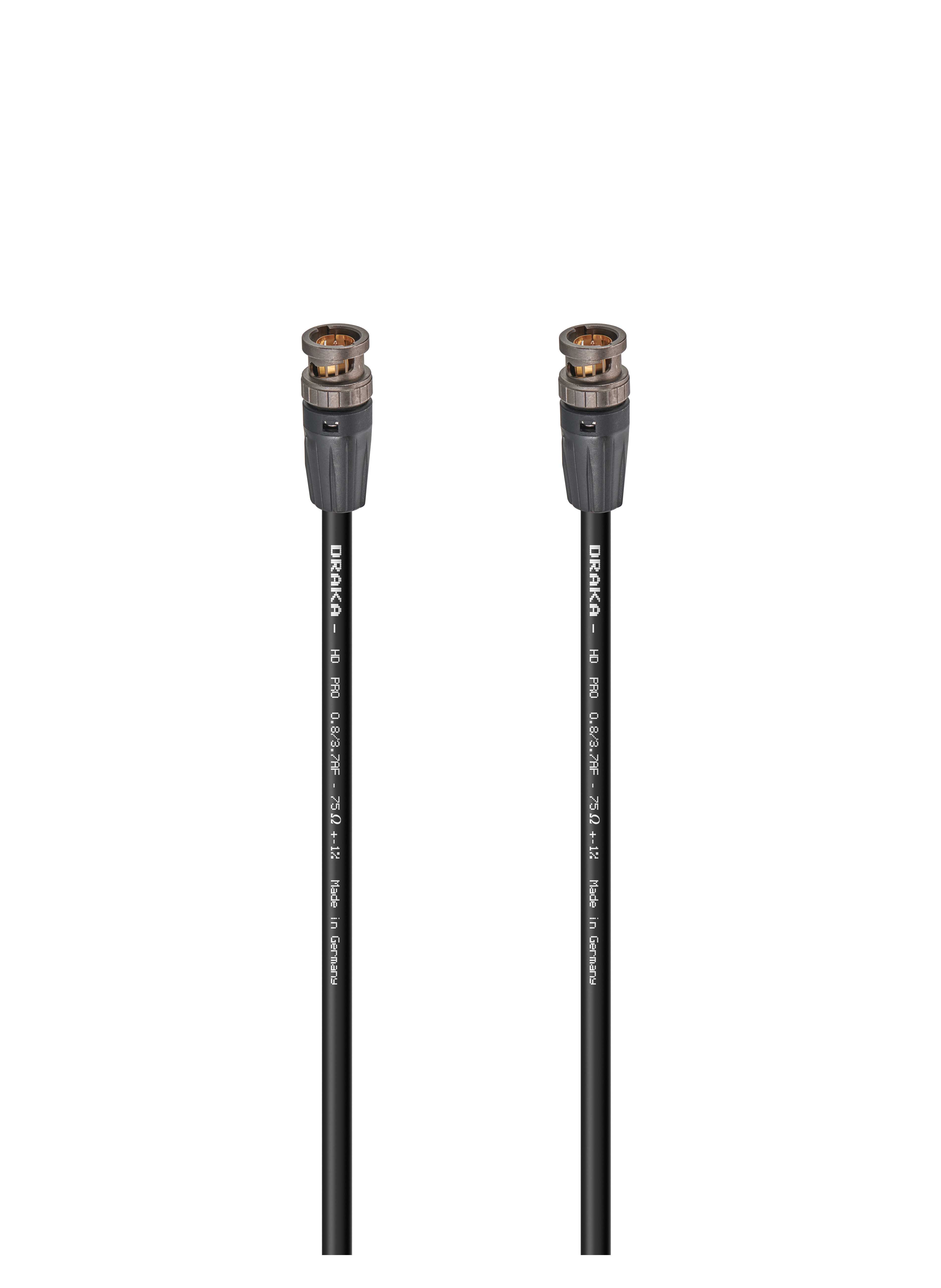 Видео кабель цифровой UHD-SDI/HDTV, 75 Ом, Standart, BNC штекер > BNC штекер. Комплектующие: разъемы Neutrik NBNC75BLP9X, Кабель DRAKA HD PRO 0.8/3.7AF GY LSHF; цвет: черный.