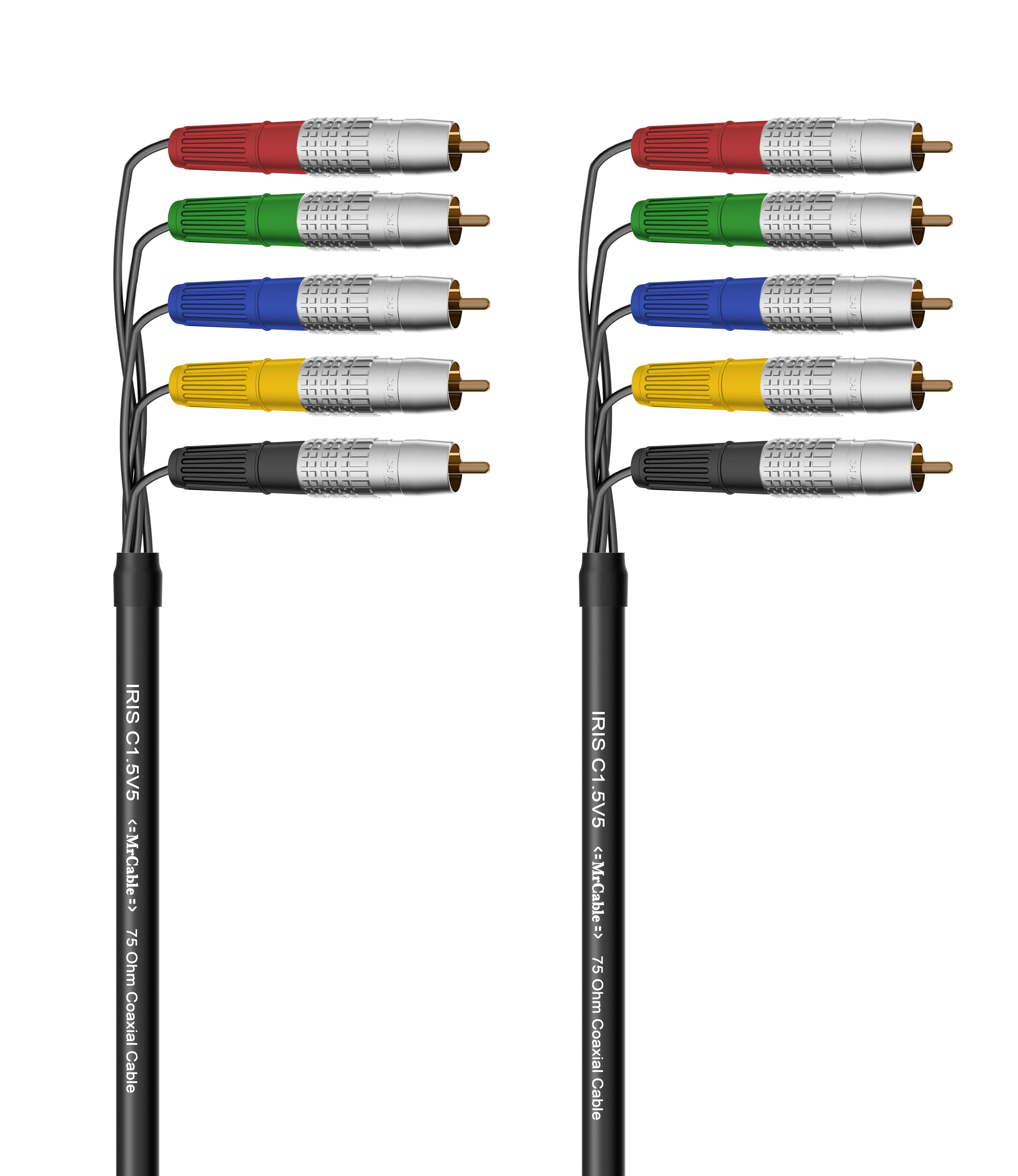 Видео кабель компонентный, RGBHV, 75 Ом, 5х RCA штекер > 5х RCA штекер. Комплектующие: разъемы Canare RCAP-C3A, Кабель MrCable IRIS C1.5V5; цвет: черный.